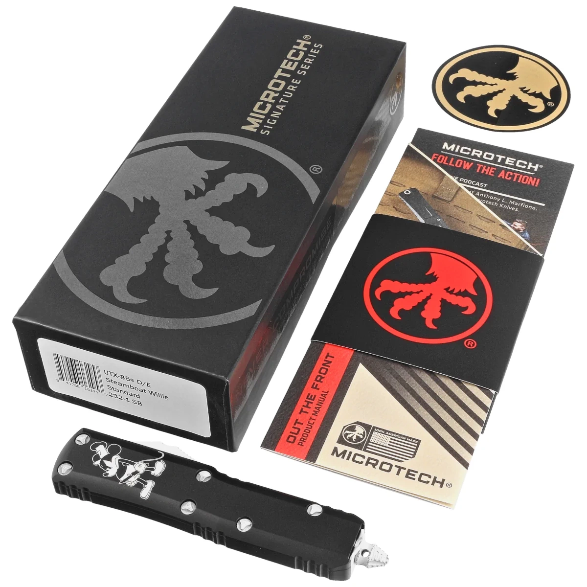 Nóż automatyczny OTF Microtech UTX-85 D/E Steamboat Willie Signature Black Aluminium, Antique White M390 (232-1SB)