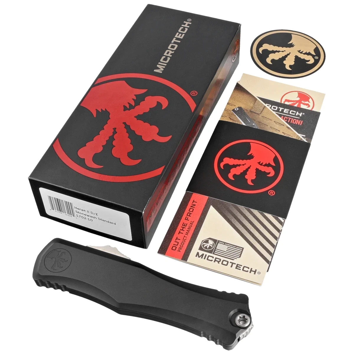 Nóż automatyczny OTF Microtech Hera II D/E Black Aluminium, Stonewashed M390MK by Tony and Sean Marfione (1702-10)