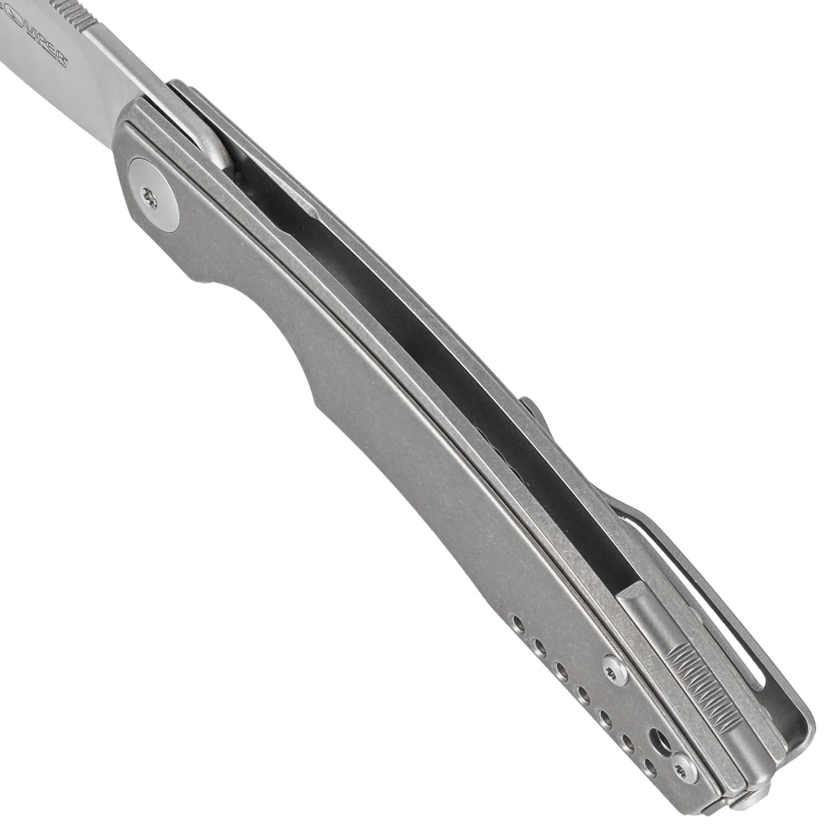 Rękojeść - z litego tytanu 6AL4V wykończonego metodą stonewashed. Konturowanie okładek eliminuje ostre krawędzie. Okładziny połączono ze sobą przy pomocy tytanowego backspacera. Klips jednopozycyjny (prawa), z tytanu, umożliwia przenoszenie noża w pozycji tip-up. Pod klipsem lanyard hole, otwór do mocowania linki zabezpieczającej lub ozdobnej.