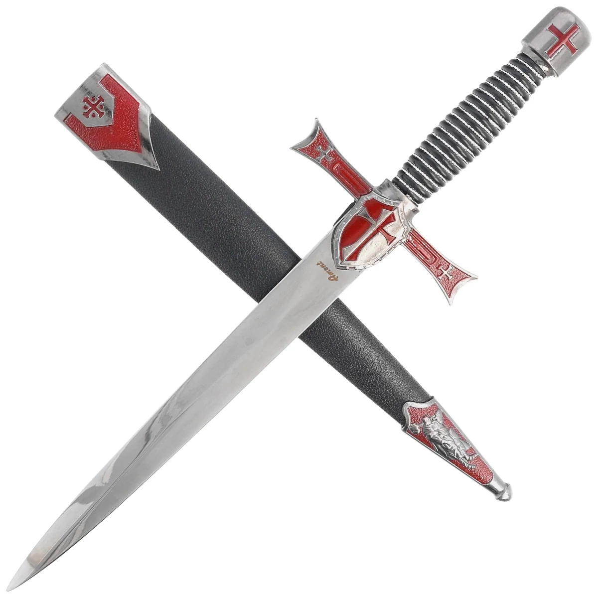 - Templar Dagger Burgundy/Black/Silver ABS, Satin Stainless Steel (S3319) – dekoracyjny sztylet templariuszy z głownią ze stali nierdzewnej, efektowną rękojeścią i zdobioną pochwą. Idealny dodatek do kolekcji broni historycznej i ekspozycji rycerskich.