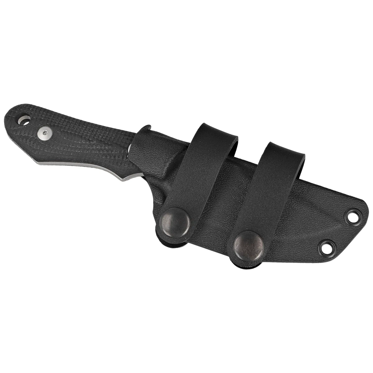 Pochwa - przedłużana, chroniąca głownię wraz z rękojeścią. Wykonana z kydexu. Mocowanie na pas lub do oporządzenia umożliwia przenoszenie noża w pozycji pionowej lub poziomej.