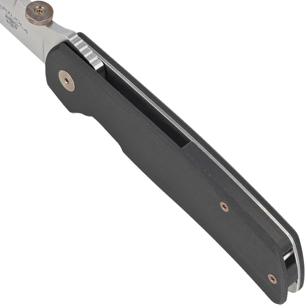 - Original Gangster Black Micarta, Satin, fabryczna edycja najbardziej znanego projektu legendy światowego knifemakingu, Boba Terzuoli, noża ATCF. Proste linie, wysoka użytkowość, bardzo dobre materiały. Znakomita jakość wykonania rzemieślników z Maniago!