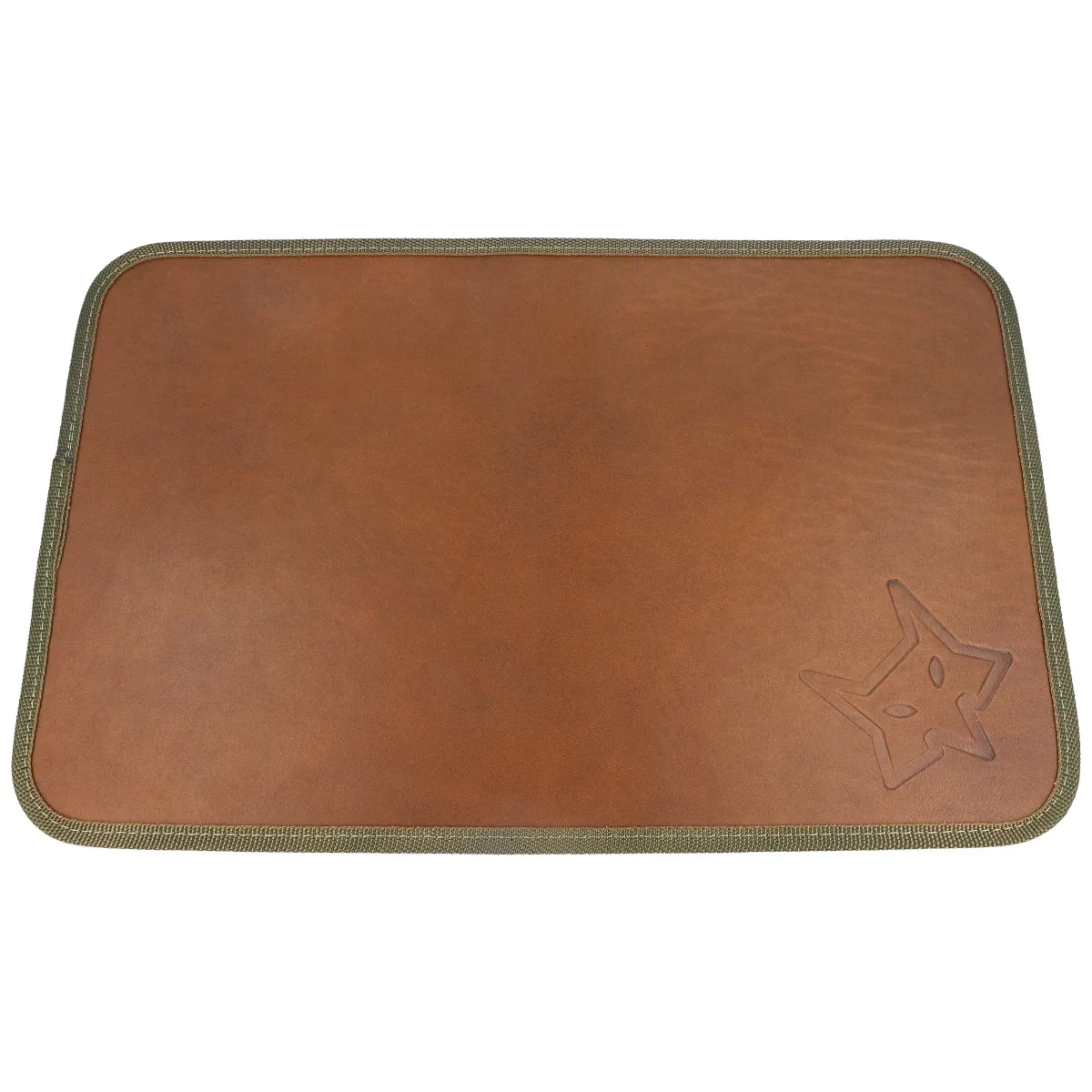 - Fox Green Leather Mat, skórzana mata na stół lub biurko do ekspozycji noży, idealne akcesorium do stylowego zaprezentowania kolekcji. Wykonana z wysokiej jakości skóry mata zapewnia elegancką i trwałą powierzchnię do eksponowania ulubionych noży.