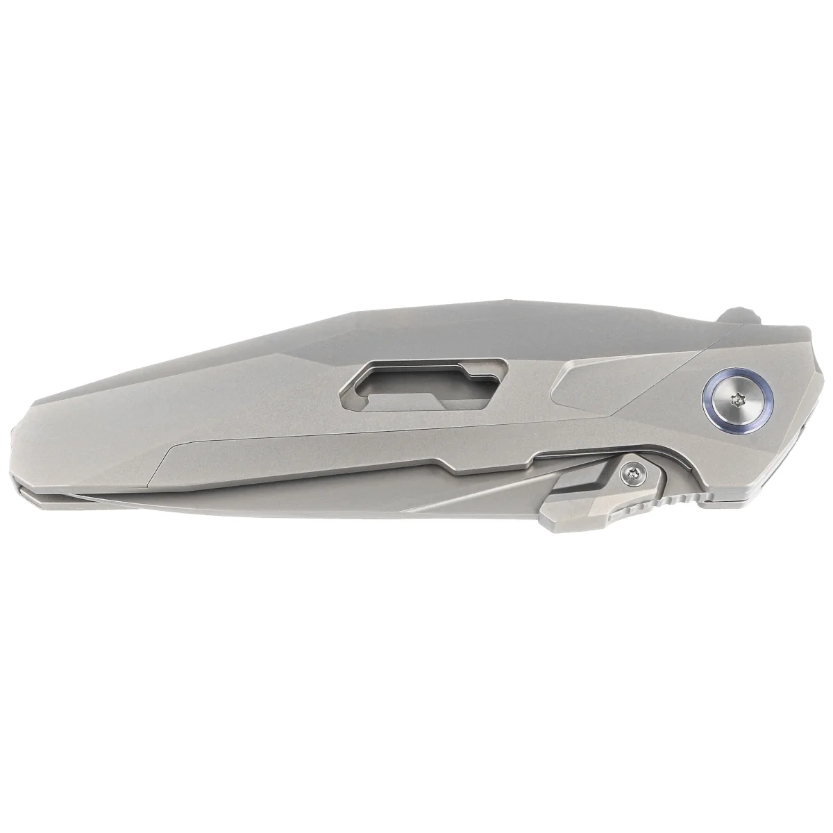 - Shadow Clip Point Gray Titanium, Satin, popis inżynierski twórców z Rike Knives. Duży nóż składany oparty na tytanowym egzoszkielecie i zewnętrznej obudowie z jednego kawałka tytanu. Głownia ze stali Böhler M390. Nieprawdopodobna jakość wykonania!