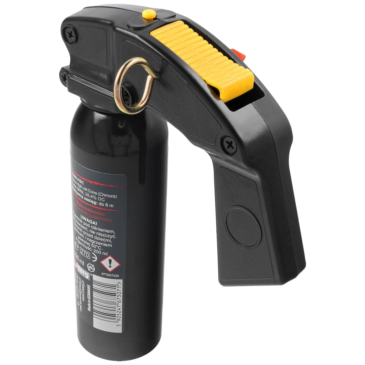 Grizzly Gel 200 ml to najmocniejszy miotacz gazu pieprzowego dostępny na rynku! Gaz o silnie wzmocnionej formule 4 mln SHU, 26.4% OC (Oleoresin Capsicum), 3.96% MC (Major Capsaicinoids) w poręcznym pojemniku z wygodną głowicą Pistol Grip.