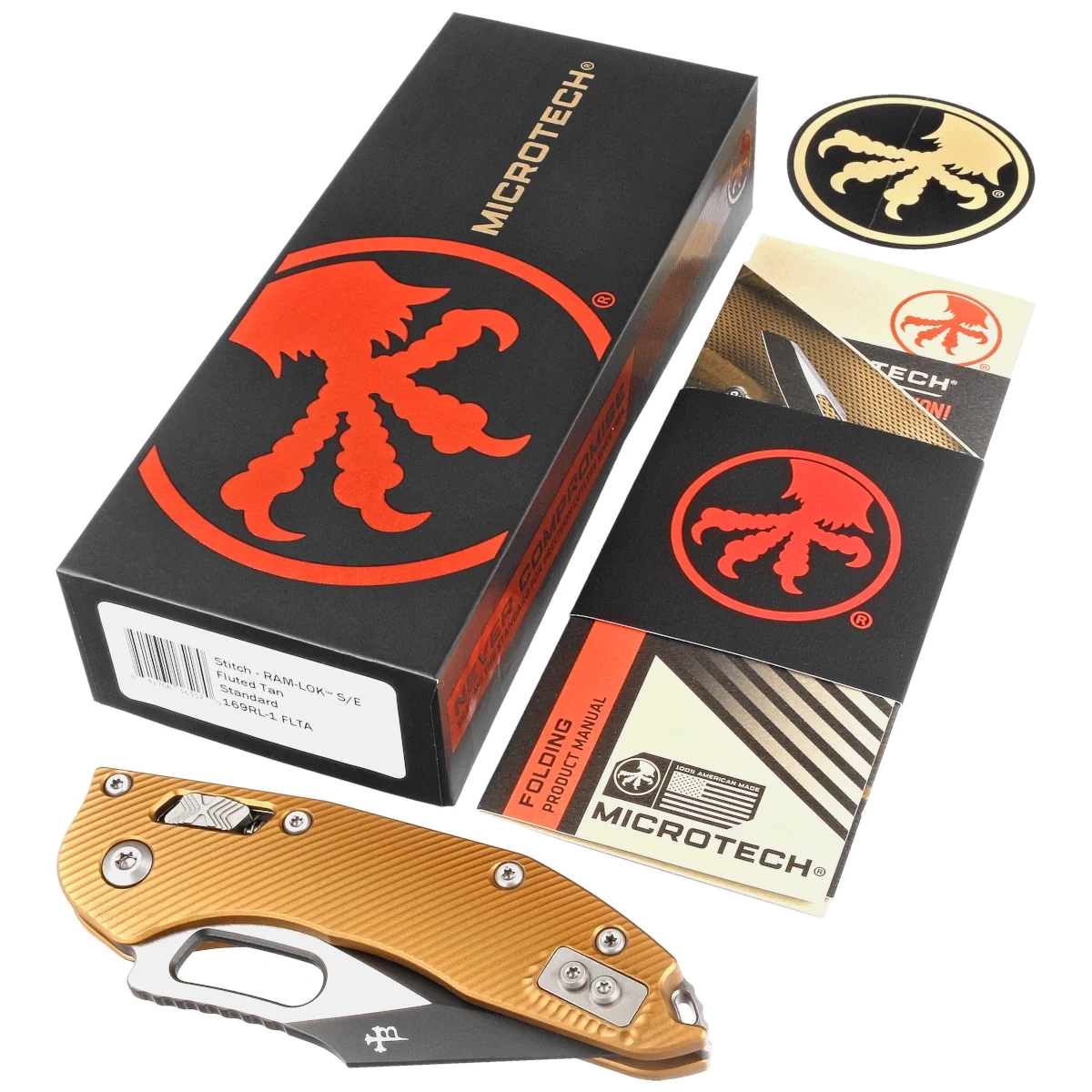 Nóż składany Microtech Stitch Ram-Lok S/E Fluted Tan Aluminium, Black M390MK by Borka Blades and Tony Marfione (169RL-1FLTA)
