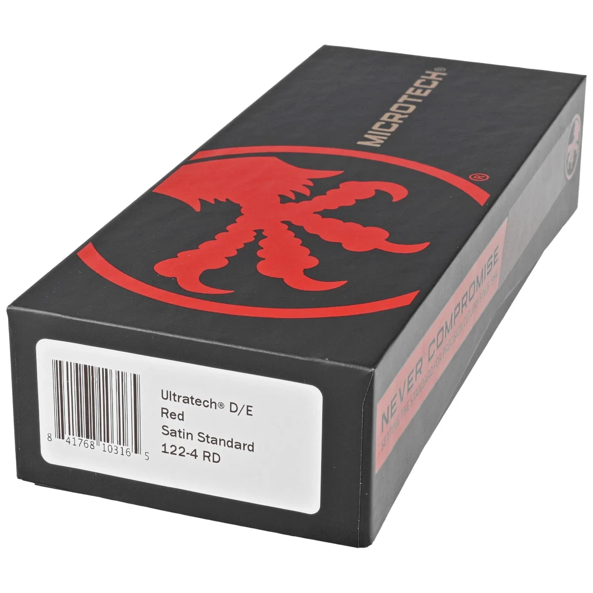 Ultratech D/E Red Aluminium, Satin to pełnowymiarowy nóż automatyczny OTF (Out The Front) z serii Ultratech. Wyposażony w piekielnie szybki mechanizm wysuwający ostre jak brzytwa ostrze double edge w efektownym wykończeniu Satin. W 100% wyprodukowany i zmontowany w USA. Projekt Anthony'ego Marfione, knifemakera i właściciela Microtech Knives.