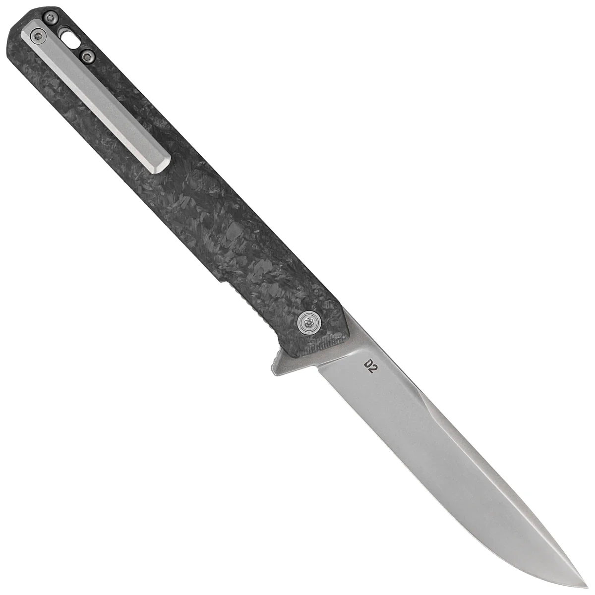 Nóż składany Tekto F2 Bravo Black Forged Carbon Fiber, Silver HW/Clip, Satin D2