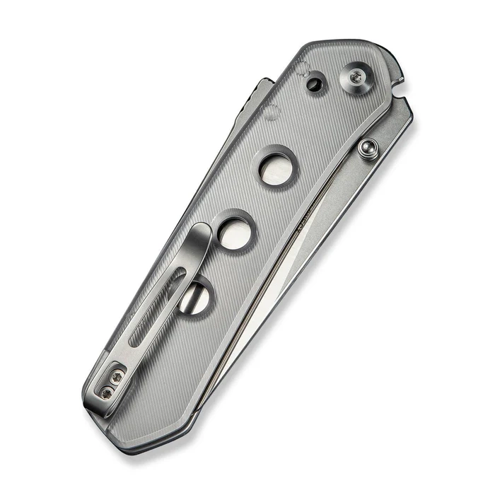 Rękojeść - fazowane okładziny z polerowanego, przezroczystego tworzywa Lexan, mocowane do linersów ze stali nierdzewnej. Prostota i solidność konstrukcji dają pewność wieloletniego użytkowania. Rękojeść została odciążona serią otworów w centrum okładzin. Klips dwupozycyjny (prawa/lewa) umożliwia przenoszenie noża w pozycji tip-up. W tylnej części znajduje się otwór do przewleczenia linki zabezpieczającej lub ozdobnej. Podobnie jak w innych modelach, oś pivota ozdobiona jest stylizowanym logiem producenta.