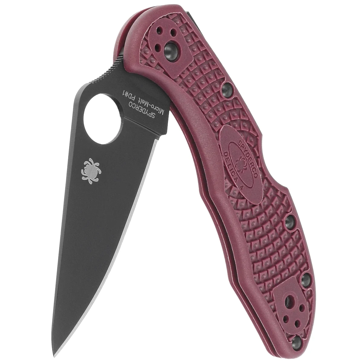 - Delica 4 Sprint Run™ Burgundy FRN, Black PD#1, limitowana edycja jednego z najsłynniejszych noży składanych EDC firmy Spyderco, modelu Delica. Nowoczesna stal Carpenter® Technology’s Micro-Melt PD#1 w burgundowych okładzinach z tworzywa FRN.