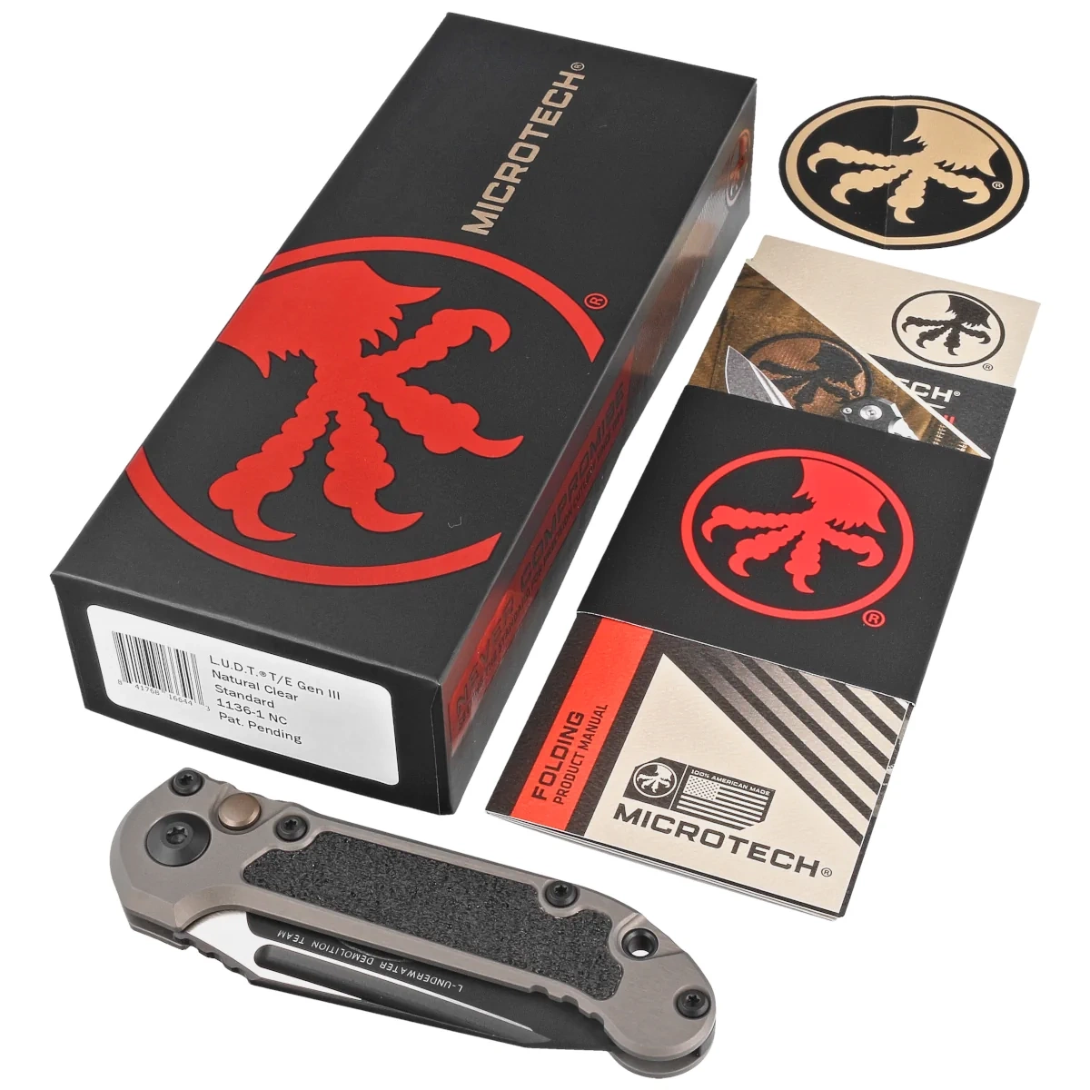 Nóż automatyczny Microtech LUDT Gen III T/E Natural Clear Aluminium, Black M390MK by Tony Marfione (1136-1NC)