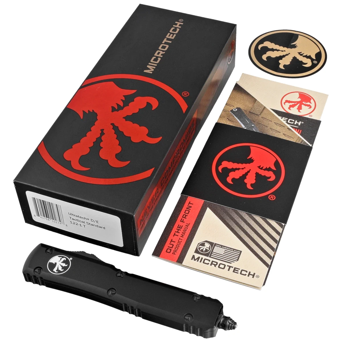 - Ultratech D/E Black Aluminium, Tactical pełnowymiarowy nóż automatyczny OTF z serii Ultratech z taktycznym wykończeniem ostrza. Pracujący w trybie D/A wyposażony w piekielnie szybki mechanizm wysuwający ostrze dagger. Projekt Tony Marfione z Microtech.