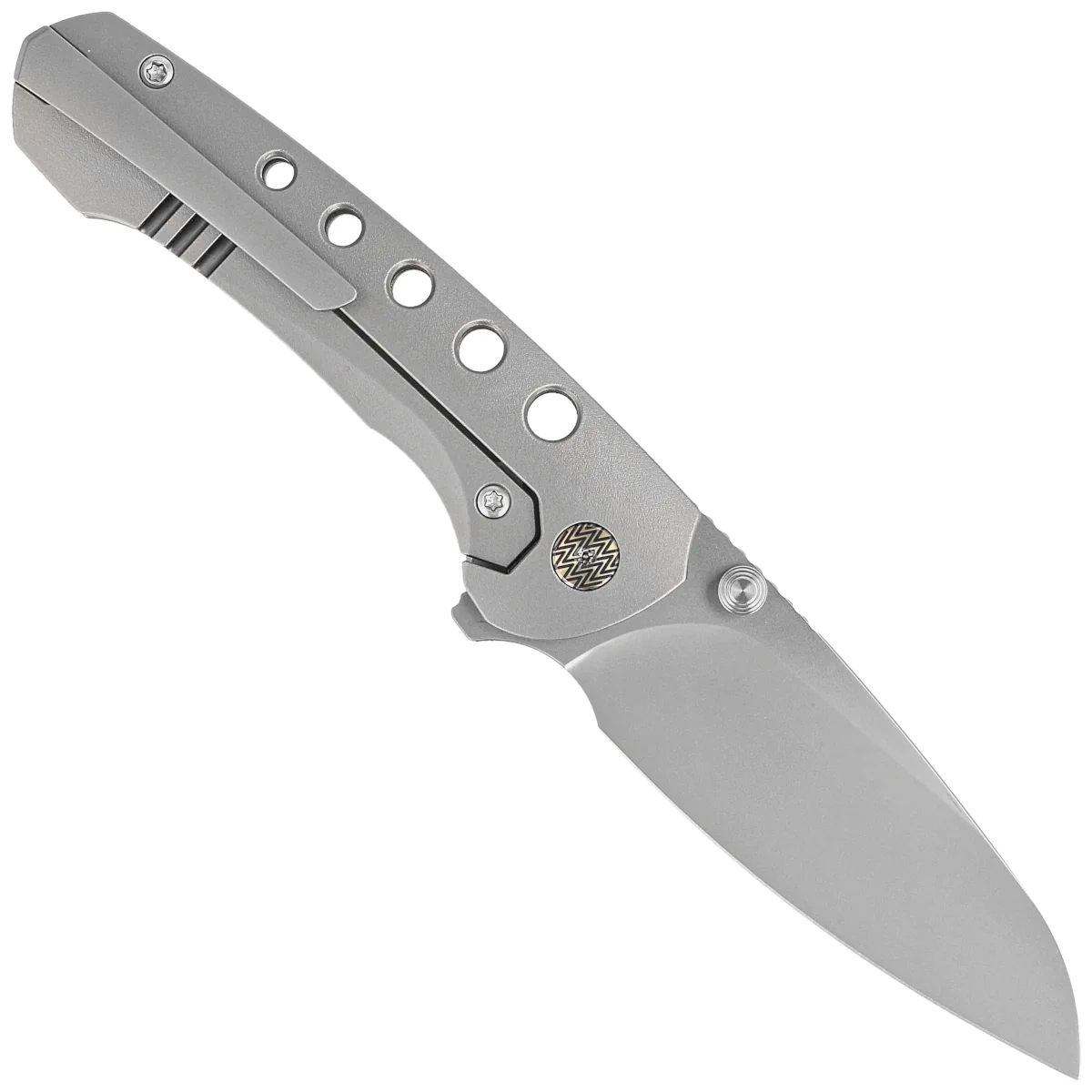 Rękojeść - grube kawałki piaskowanego tytanu 6AL4V, pięknie frezowane przy pomocy obrabiarek CNC. Tytanowy backspacer do którego przymocowano okładziny gwarantuje sztywność i wytrzymałość całej konstrukcji. Prostota i solidność konstrukcji dają pewność wieloletniego użytkowania. Klips jednopozycyjny (prawa), wykonany z tytanu, umożliwia przenoszenie noża w pozycji tip-up. Oś pivota ozdobiono wykonaną z tytanu nakładką. W tylnej części rękojeści miejsce do przechowywania tytanowej wykałaczki, prostego, ale bardzo przydatnego w codziennym życiu i wyprawach outdoorowych akcesorium.