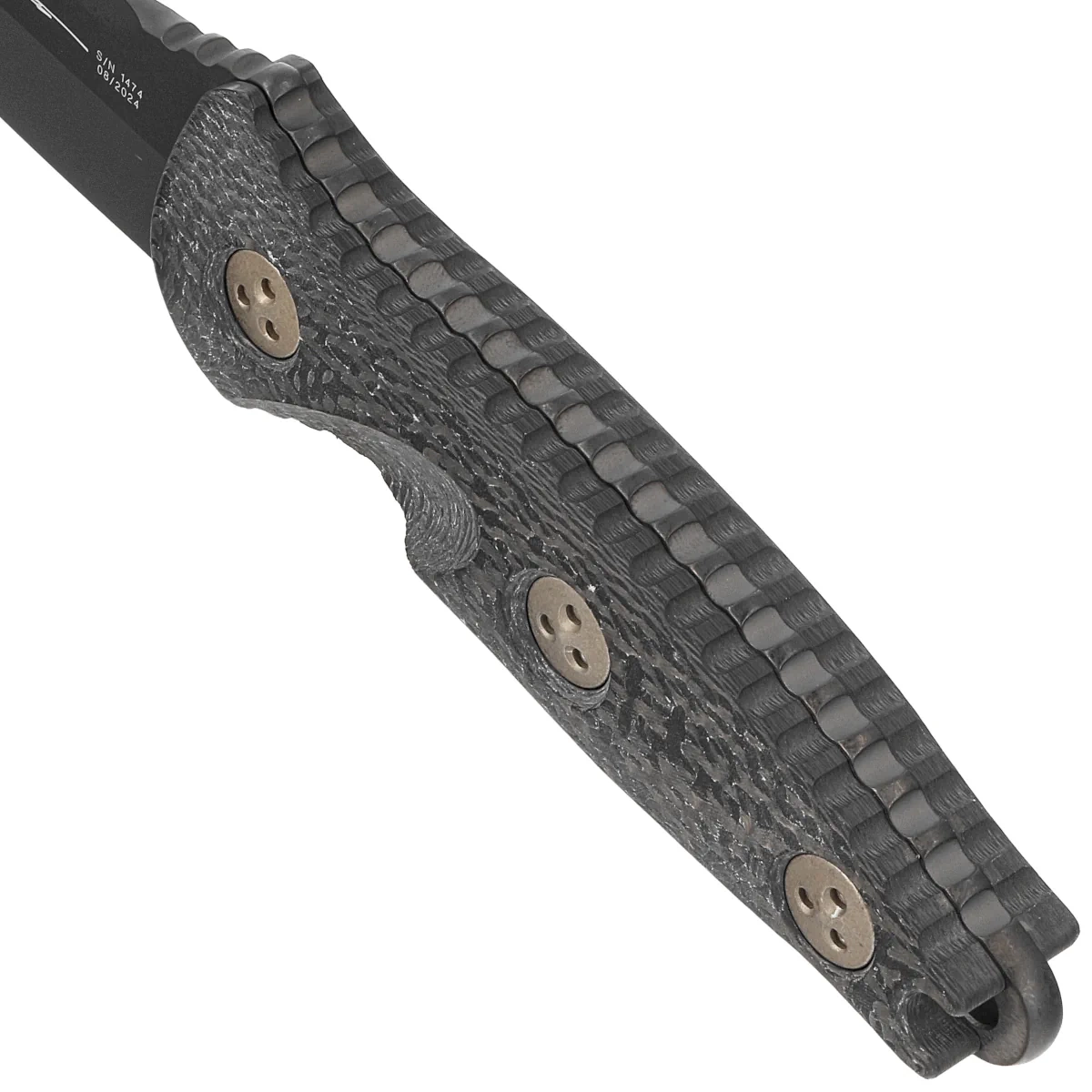 Rękojeść - profilowana z podcięciami pod palce. Okładziny z włókna węglowego (Carbon Fiber) mocowanego bezpośrednio do blanka za pomocą autorskich śrub Microtecha. Jest to najprostsza i najpewniejsza konstrukcja zapewniająca praktyczną niezniszczalność noża. Zaletą włókna węglowego jest lekkość materiału połączona z prawie kompletną niewrażliwością na warunki atmosferyczne. Dół rękojeści pokryty na całej długości nacięciami (jimpingiem) który wzmacnia pewność chwytu i kontrolę nad nożem podczas pracy. Wystający fragment tanga może służyć jako zbijak do szyb, zawiera również lanyard hole, otwór na linkę asekuracyjną lub ozdobną.