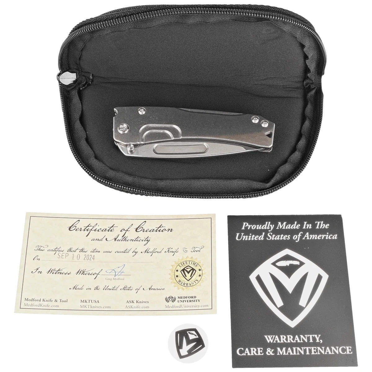 Nóż składany Medford Slim Midi Marauder Tanto Tumbled Titanium, Std HW, Brsh/Flm Tsunami Clip, Tumbled S45VN by Greg Medford (MK2014TT-01TM-TSCF-Q4)