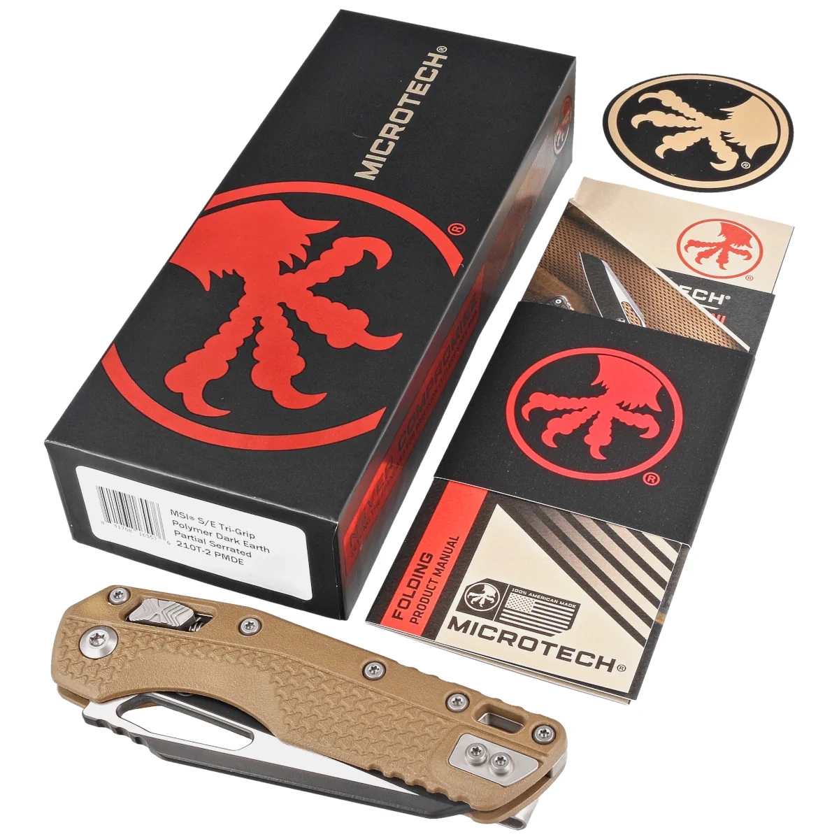 Nóż składany Microtech MSI S/E Ram-Lok Dark Earth Tri-Grip Polymer, Black P/S M390MK by Tony Marfione (210T-2PMDE)