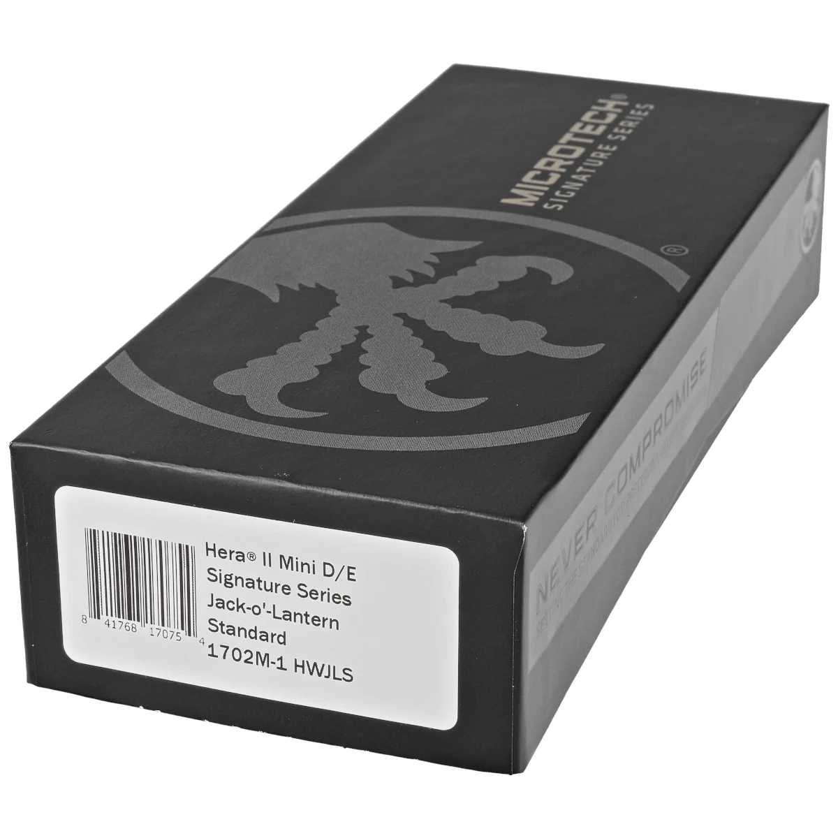 Nóż automatyczny OTF Microtech Hera II Mini D/E Signature Halloween Jack-o'-Lantern Aluminium, Satin M390MK by Tony and Sean Marfione (1702M-1HWJLS)
