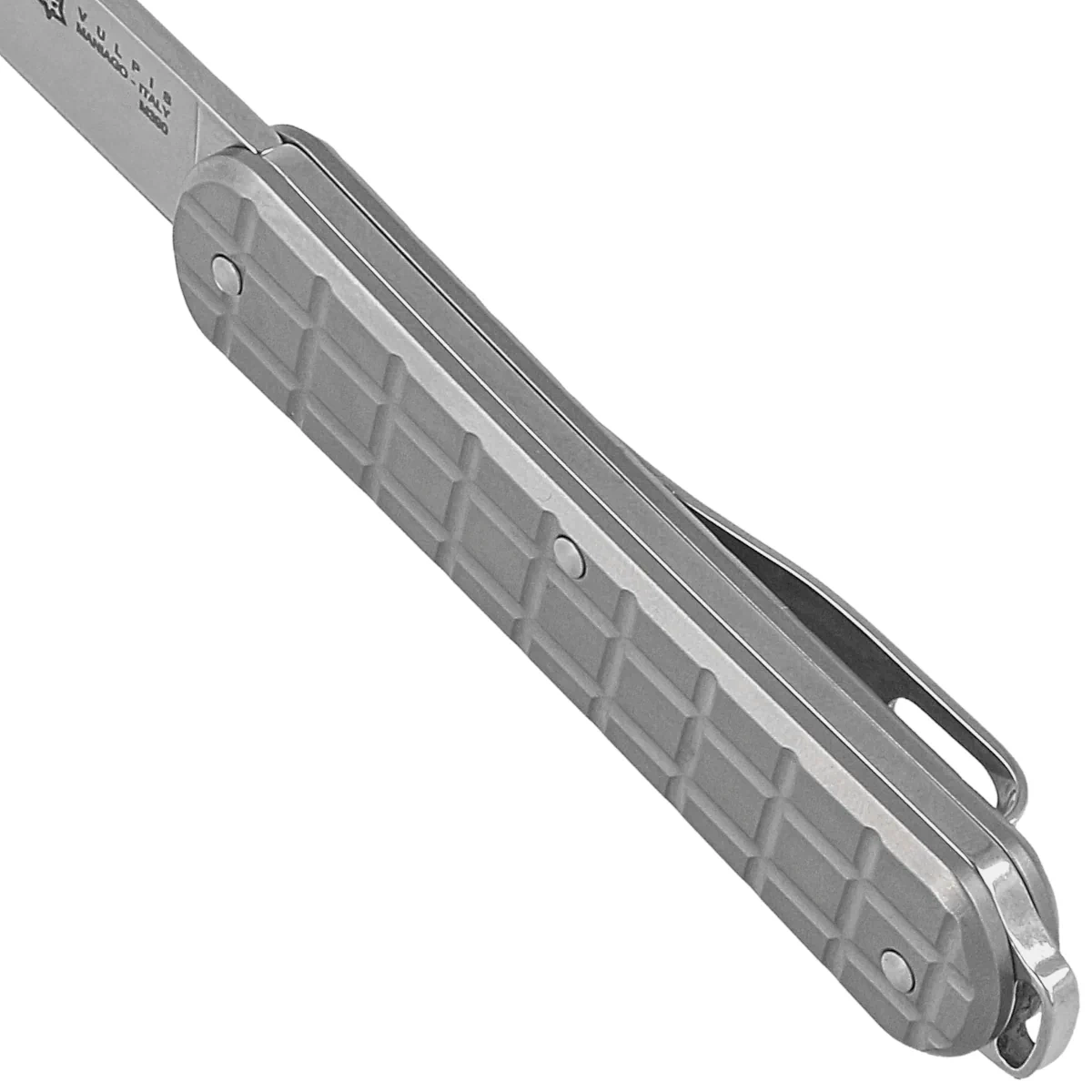 - Vulpis 130 Frag Titanium, Polished, seria Vulpis narodziła się z potrzeby stworzenia kompaktowego, wszechstronnego noża wielofunkcyjnego o nowoczesnym stylu, wykonanego z najlepszych materiałów. Zdobywca nagrody European Product Design Award 2023!