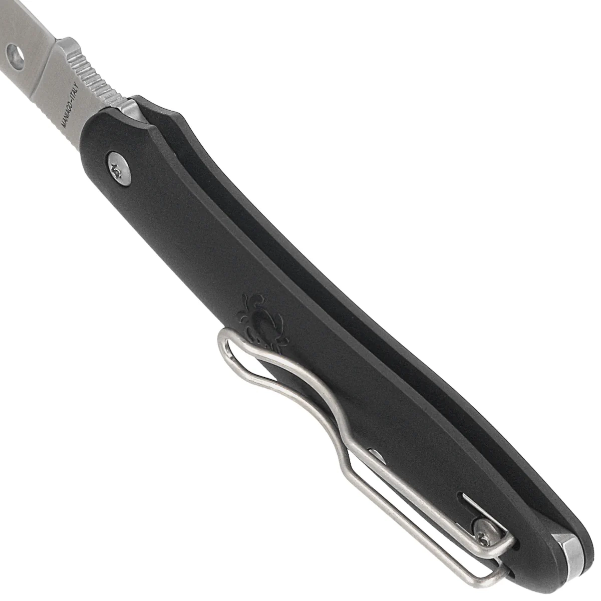 - Roadie XL Black FRN, Satin, projekt Sala Glessera, założyciela firmy Spyderco. Klasyczny pen knife z doskonałej stali Böhler M398 i rękojeści z kompozytu FRN. Ultralekki, łatwy do przenoszenia, z łatwością zmieści się w każdym bagażu czy kieszeni.