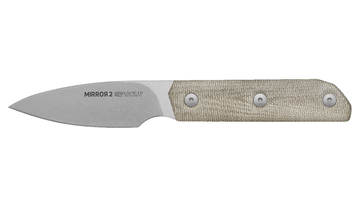 - Mirror2 Green Canvas Micarta, Stonewashed to wysmakowany projekt Igora Bortolussiego którego celem było oddanie klientowi kompaktowego noża dla gentlemana. Głownia ze stali Böhler M390, wygodna rękojeść z kompozytu Canvas Micarta.