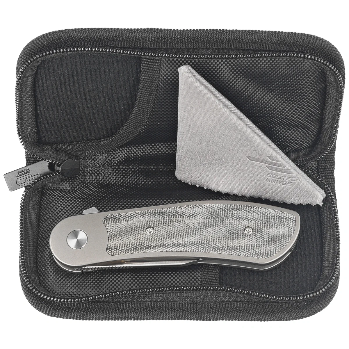 Nóż składany Bestech Vestige Grey Titanium/Black Micarta, Satin MagnaCut by Justin Lundquist (BT2411A)