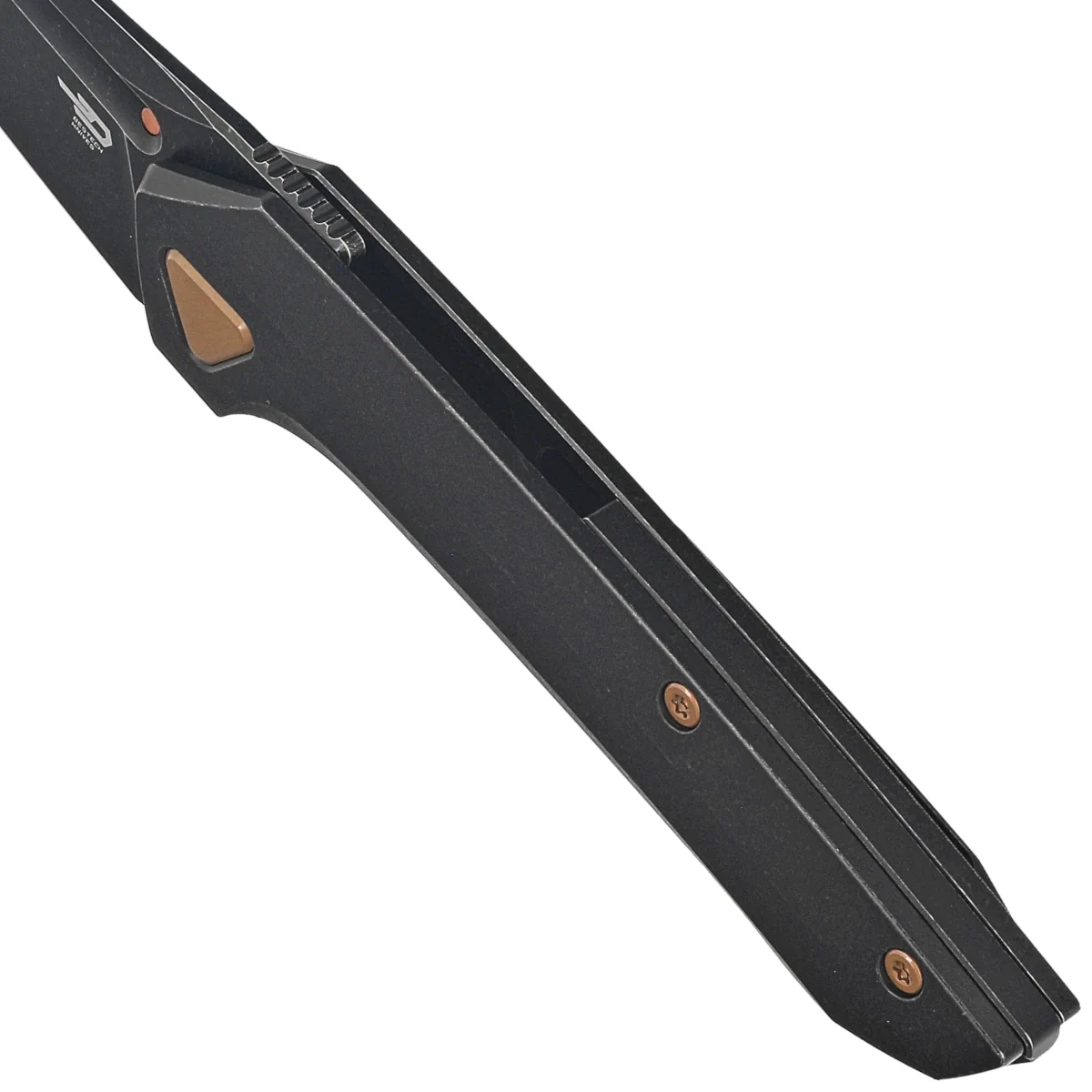 VK-Navi Black Titanium, Black Stonewashed, kompaktowy, łatwy do przenoszenia nóż składany EDC. Efekt współpracy Vulpex Knives i firmy Bestech. Prosta, wygodna rękojeść z tytanu, znakomita stal ostrza MagnaCut, absolutny bestseller!