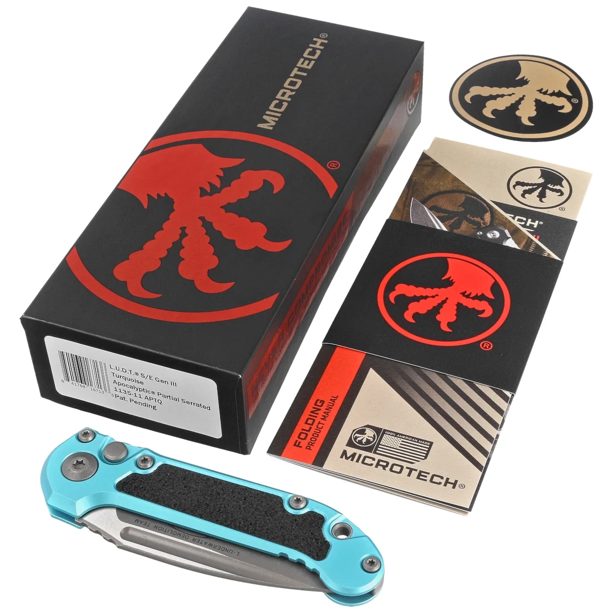 Nóż automatyczny Microtech LUDT Gen III S/E Turquoise Aluminium, Apocalyptic P/S M390MK by Tony Marfione (1135-11APTQ)