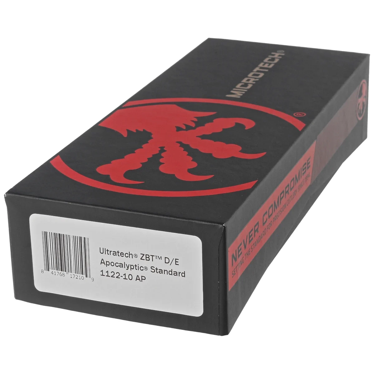 Ultratech Gen III ZBP D/E Black Aluminium, Apocalyptic to nowa odsłona serii Ultratech - pierwszy nóż OTF firmy Microtech bez jakiegokolwiek luzu ostrza po jego rozłożeniu! Automat z ostrzem "blade play free" wyróżnia się szeregiem usprawnień, takich jak; Crud Kutter™, Dual-Fuel Drive Train™, Zero Blade Play™. Przeprojektowano również rękojeść, wyposażając ją w rozwiązania znane z innych modeli. Pracujący w trybie D/A (Double Action), umożliwia błyskawiczne wysunięcie i schowanie ostrza za pomocą jednego ruchu kciuka. Projekt autorstwa Tony’ego Marfione, właściciela Microtech Knives, łączy w sobie nowoczesny design z najwyższą jakością wykonania
