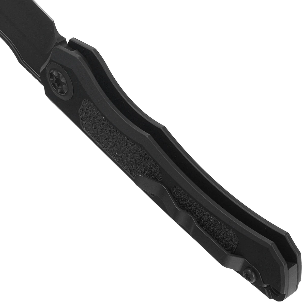 Wraith V4 Auto Tactical Black DLC Aluminium/3M, Black DLC to potężny nóż automatyczny typu switchblade z serii Wraith-A w wersji Tactical. Wykorzystuje działający z ogromną siłą i mocą, sprężynowy mechanizm rozkładający ostrze, wyróżniając go na tle innych noży. Wyposażony w ostrze ze stali MagnaCut pokryte matowym, czarnym wykończeniem DLC i aluminiową rękojeść z czarną wkładką trakcyjną, łączącą lepszą przyczepność z wyrafinowaną elegancją. Zaprojektowany z myślą o wydajności w pracy, łączy w sobie elegancję i funkcjonalność. Precyzja wykonania, jakość materiałów czynią go nie tylko praktycznym narzędziem, ale także dziełem sztuki użytkowej. Bez względu na to, czy jesteś kolekcjonerem noży, czy szukasz niezawodnego narzędzia do codziennego użytku, Wraith Auto to nóż, który z pewnością przekroczy Twoje oczekiwania, to wyjątkowe doświadczenie, które na nowo definiuje, czym może być nóż automatyczny.