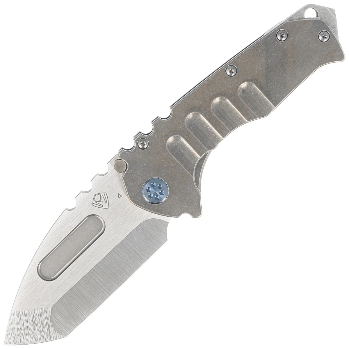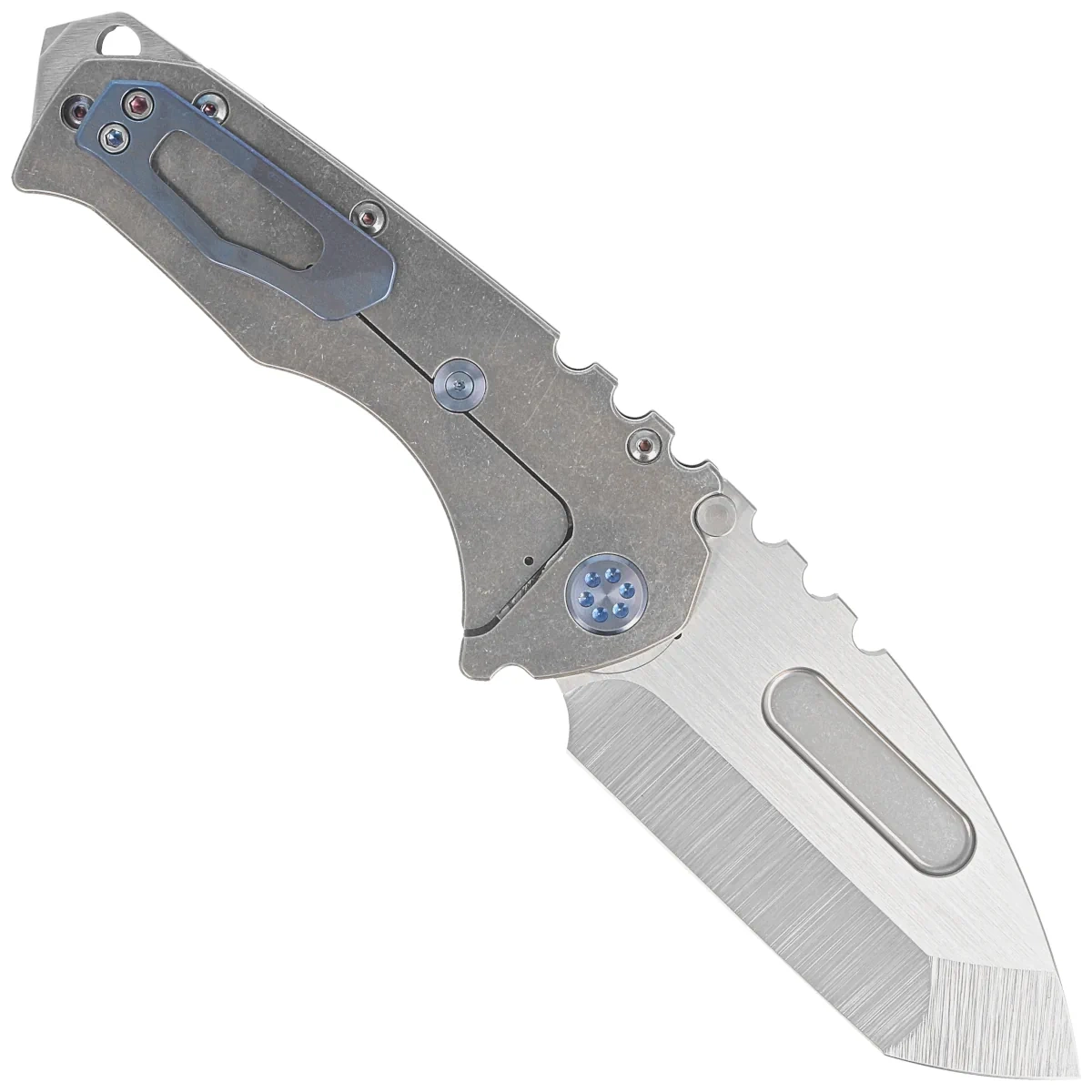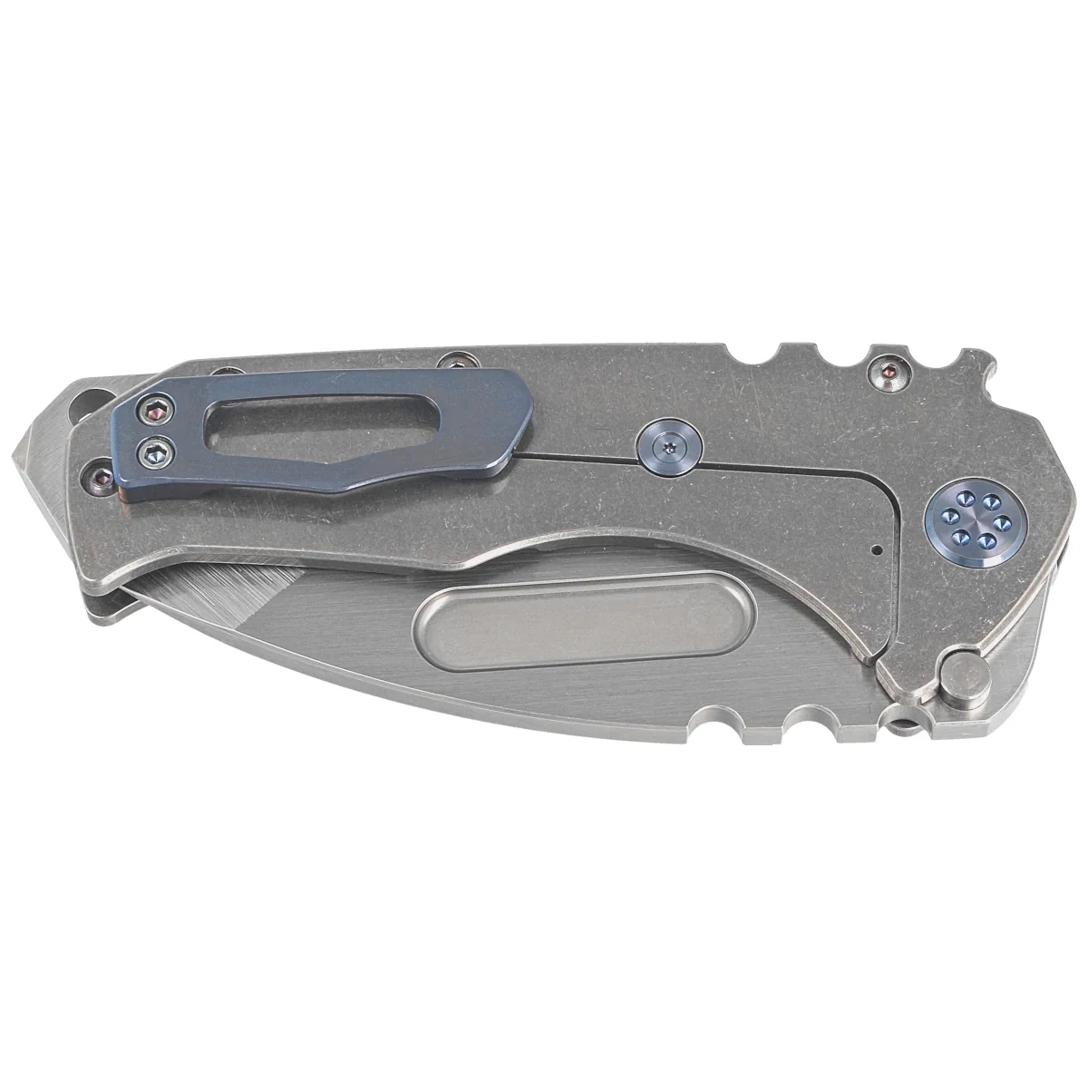 Nóż składany Medford Praetorian T Tanto Tumbled Titanium, Blue HW/Clip, Tumbled S45VN by Greg Medford (MK0124TT-01TM-T2C2-BN)