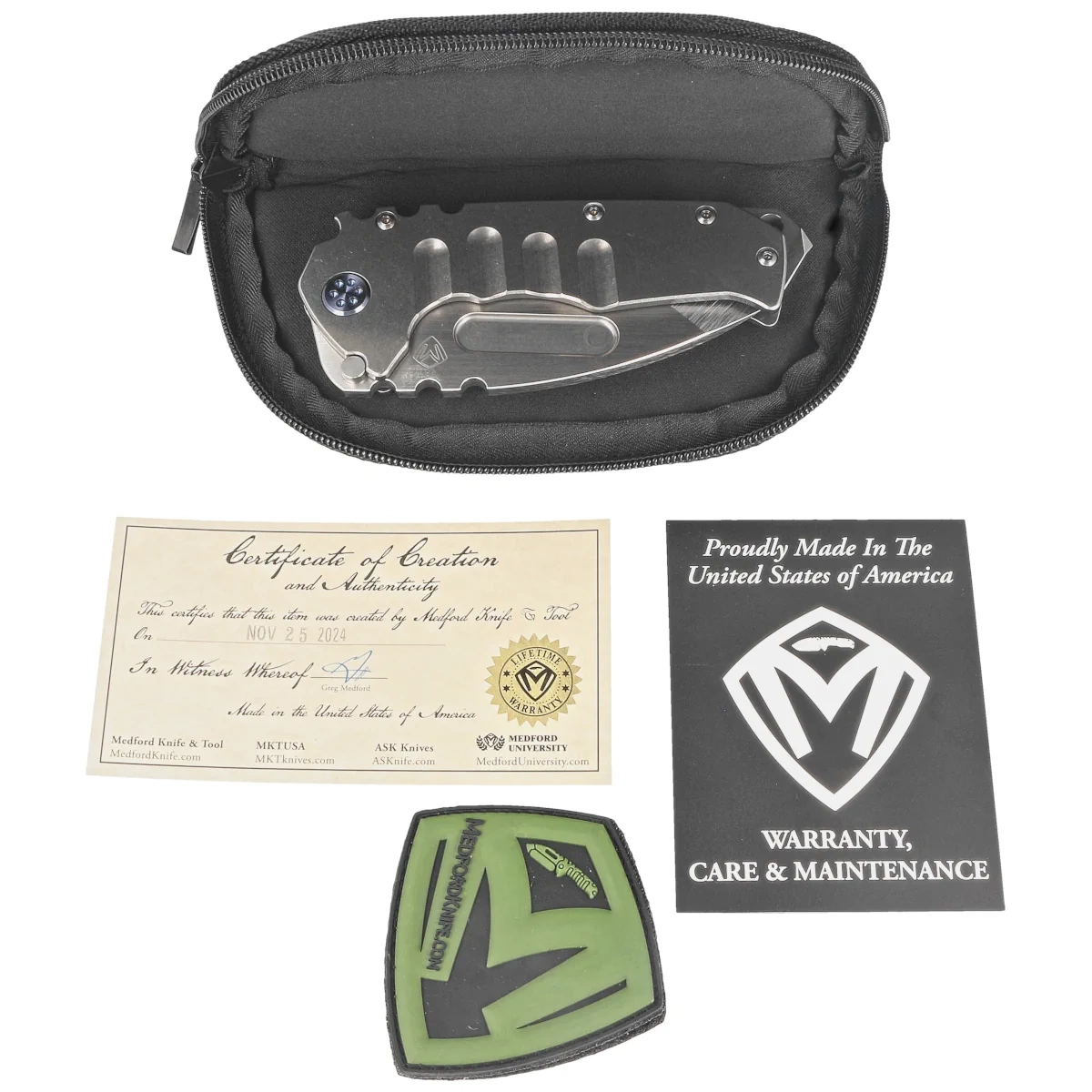 Greg Medford, założyciel Medford Knife and Tool, to amerykański rzemieślnik i patriota z Arizony. Jego grecko-irlandzkie korzenie i wartości, które wpoiła mu rodzina, takie jak pragmatyzm i ciężka praca kształtowały jego drogę innowacyjnego projektanta. Jako były żołnierz piechoty morskiej, pilot i mistrz sztuk walki, Greg łączy w swoich projektach amerykańską pragmatyczność, wolność i zaawansowaną technologię. Firma, założona w 2010 roku, słynie z ręcznie robionych, trwałych narzędzi taktycznych i noży, w tym znanego modelu Praetorian