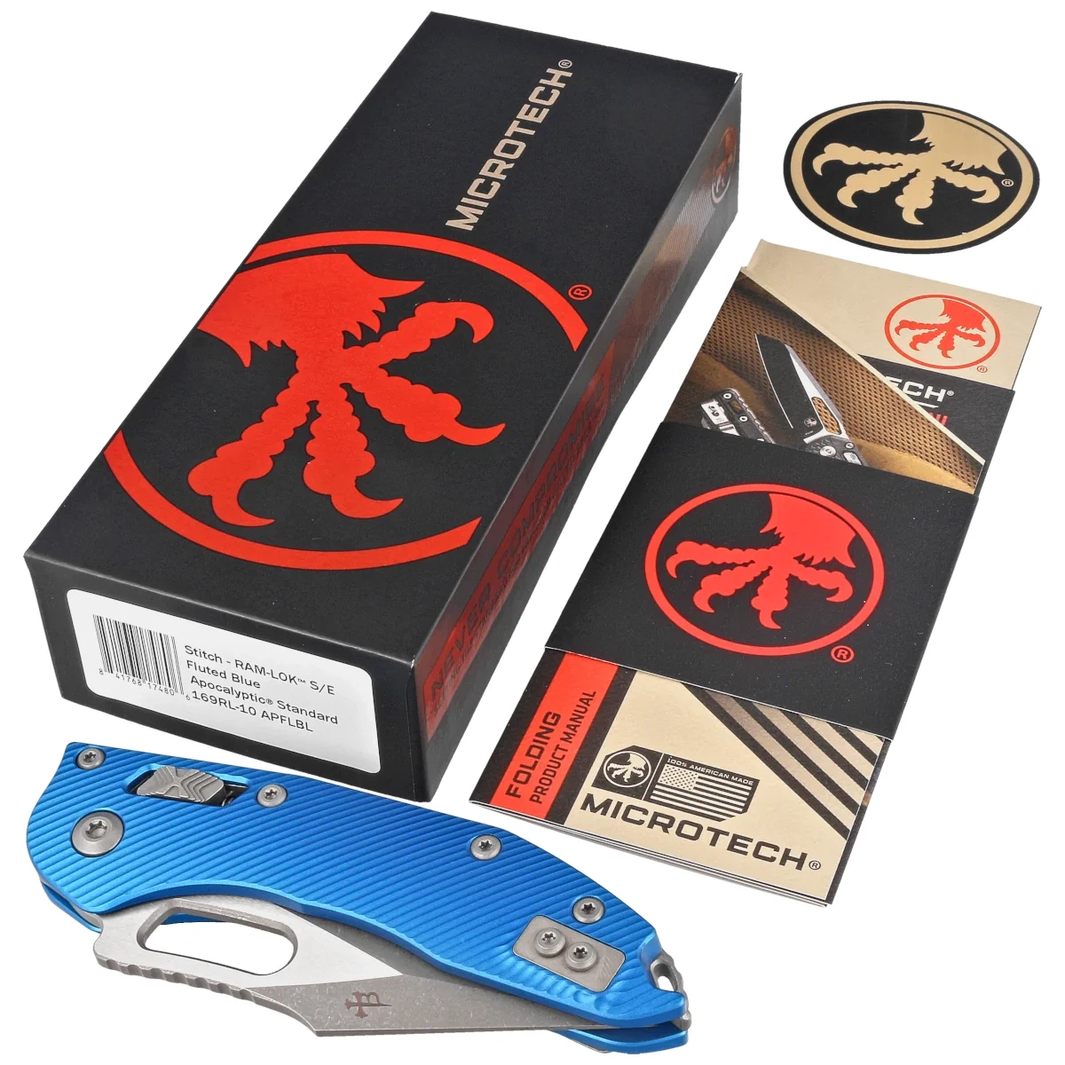Nóż składany Microtech Stitch Ram-Lok S/E Blue Fluted G10, Apocalyptic M390MK by Borka Blades and Tony Marfione (169RL-10APFLBL)