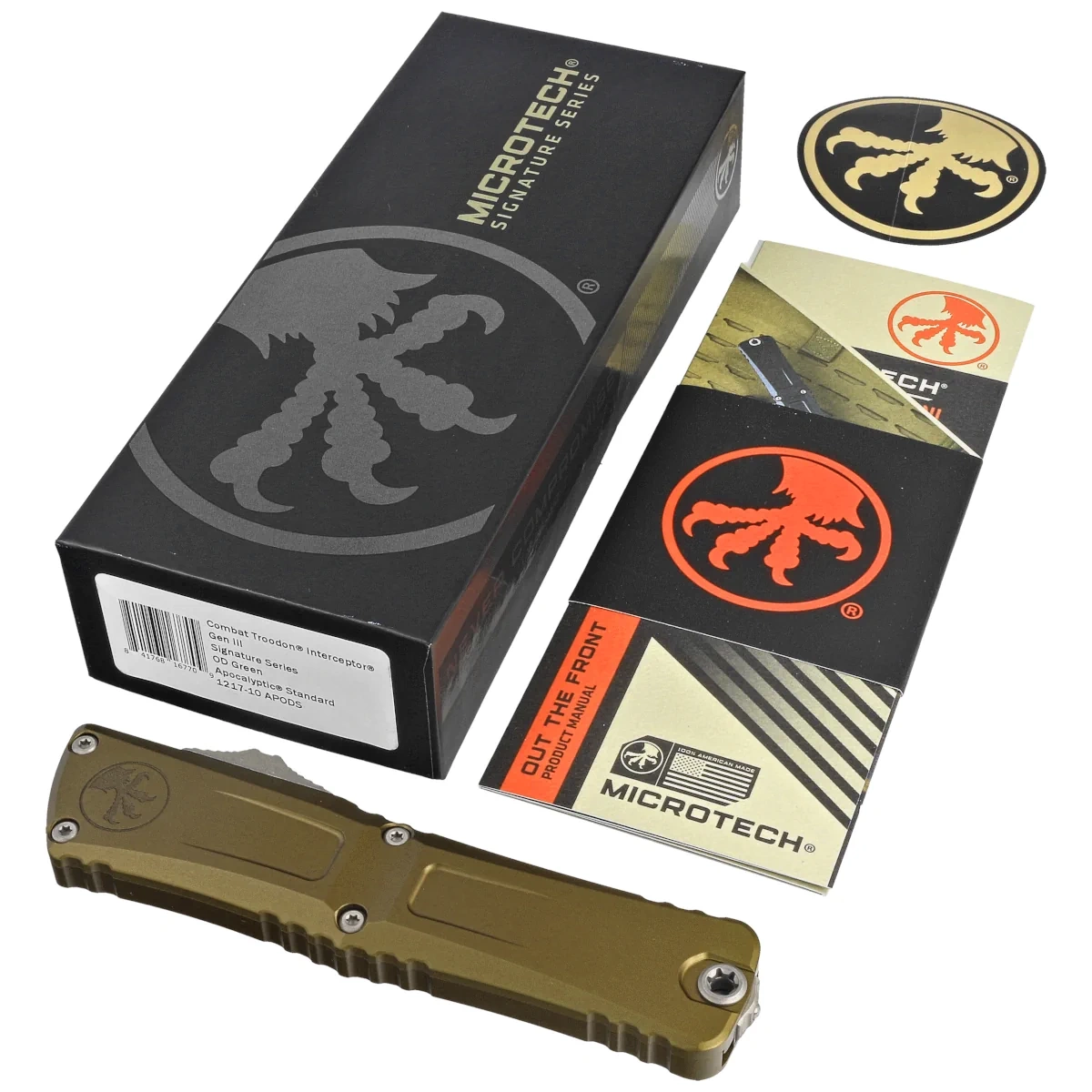 Nóż automatyczny OTF Microtech Combat Troodon Gen III Interceptor OD Green Aluminium, Apocalyptic M390MK by Tony Marfione (1217-10APODS)