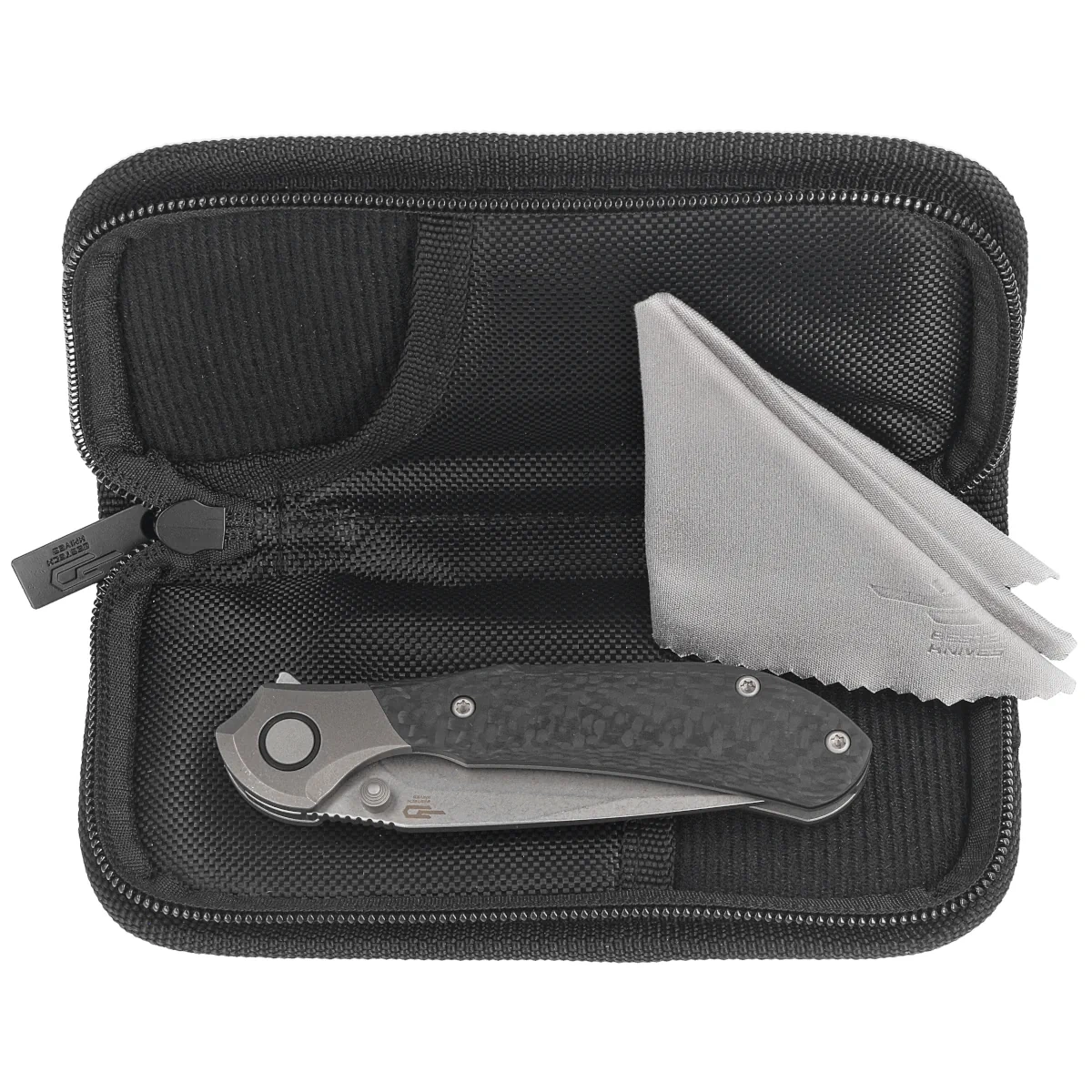 Futerał - nóż zapakowano w zapinany zamkiem nylonowy miękki pouch z logo marki służący do bezpiecznego przenoszenia i przechowywania foldera.
