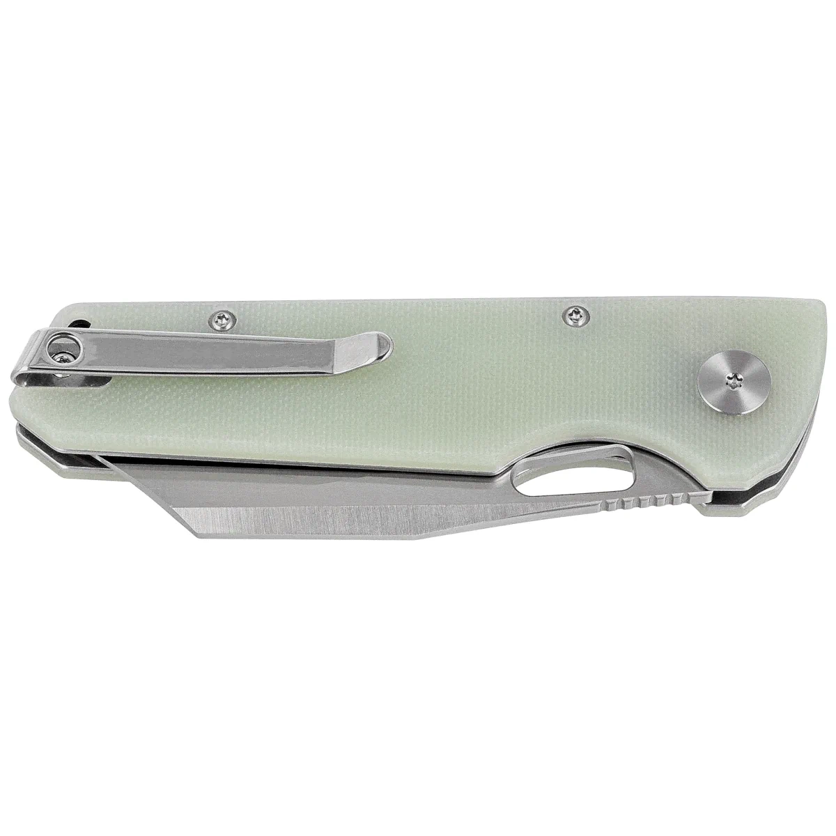 Guardian Jade G10, Satin, kompaktowy folder EDC, który z pewnością spełni oczekiwania nawet najbardziej wymagających użytkowników. Głownia typu sheepfoot wykonaną z wysokiej jakości stali narzędziowej D2 o doskonałej odporności na uszkodzenia oraz długie trzymanie ostrości, co zapewnia długotrwałe i efektywne użytkowanie. Rękojeść wykonana z kompozytu G10 gwarantuje pewny i komfortowy chwyt, nawet w trudnych warunkach. Intuicyjna blokada Button Lock zapewnia bezpieczeństwo podczas użytkowania, a otwór w klindze do otwierania umożliwia szybkie i łatwe rozkładanie noża jedną ręką, co jest niezwykle praktyczne w sytuacjach wymagających natychmiastowej reakcji. Dzięki znakomitemu stosunkowi jakości do ceny, nóż Bestechman Guardian stanowi doskonały wybór dla każdego, kto poszukuje niezawodnego narzędzia codziennego użytku. Jego kompaktowe wymiary i lekka konstrukcja sprawiają, że można go zawsze mieć przy sobie, gotowego do użycia w każdej sytuacji. To nóż, który łączy w sobie funkcjonalność, estetykę i trwałość, będąc niezastąpionym towarzyszem w codziennych wyzwaniach.