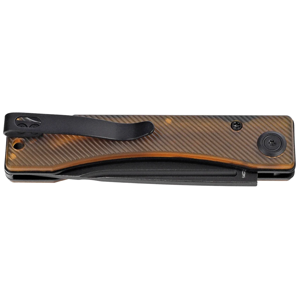 - Akino Yellow Ultem, Blackwashed kompaktowy folder EDC, projekt znanego designera Tiguassa. Użytkowa głownia ze stali Sandvik 14C28N. Prosta, wygodna rękojeść z kompozytu ULTEM. Jedna z najlepiej przetestowanych blokad na świecie, czyli lockback.