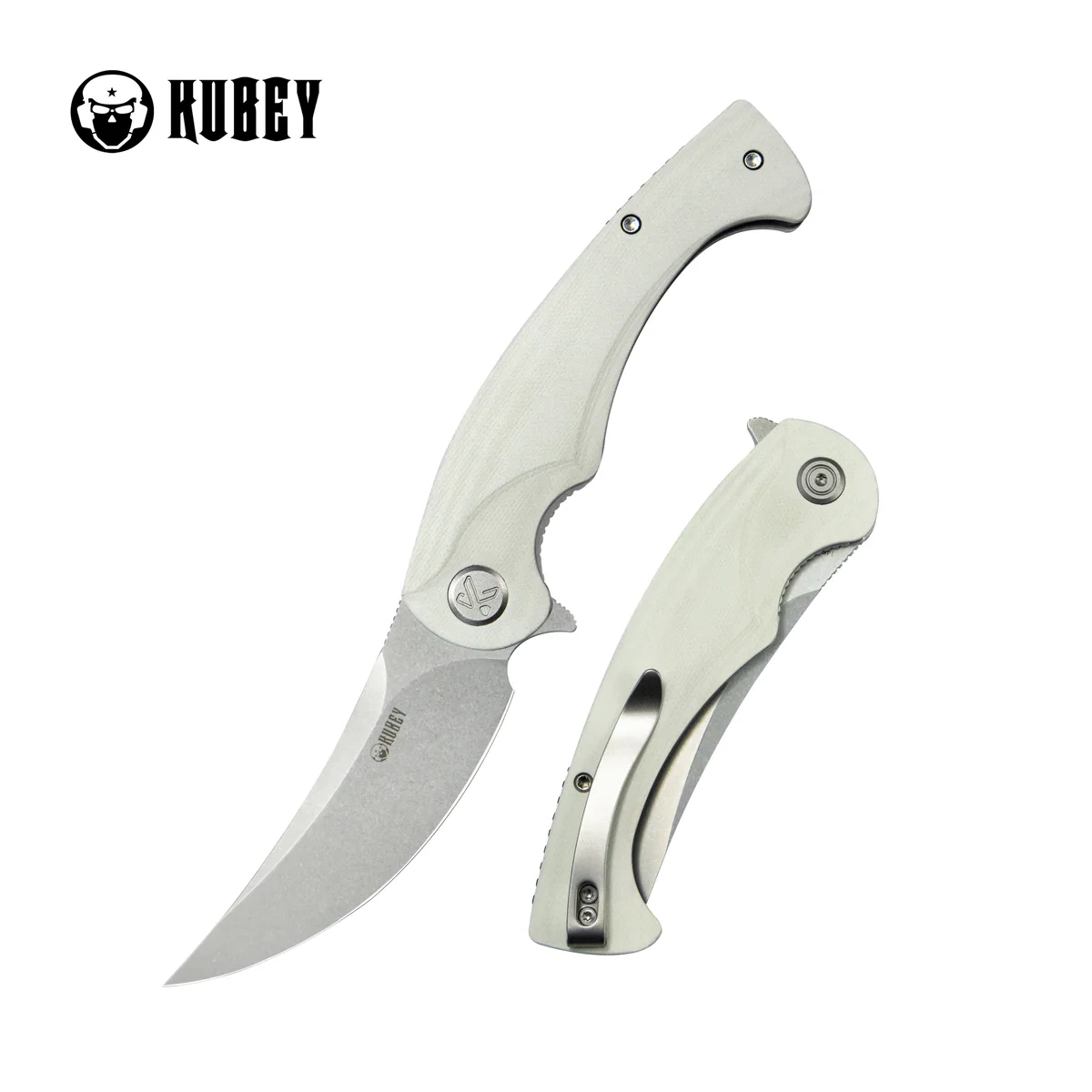 - Scimitar White G10, Bead Blasted wyrazisty folder z charakterystyczną głownią ze stali Sandvik 14C28N, rękojeść z nowoczesnego kompozytu G10. Idealny nóż do intensywnego użytkowania. Kubey, trwałość i funkcjonalność narzędzi, które służą latami!