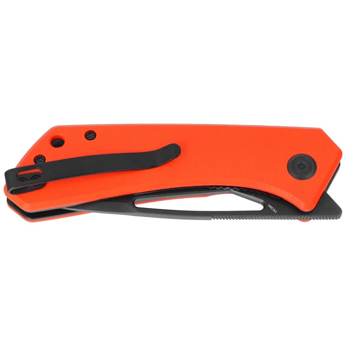 - Thalia Orange G10, Blackwashed kompaktowy, mocny folder EDC. Głownia drop point ze stali nierdzewnej Sandvik 14C28N, Front Flipper do otwierania oraz rękojeść z kompozytu G10 zapewniająca pewny uchwyt. Znakomity stosunek jakości do ceny! Bestseller!