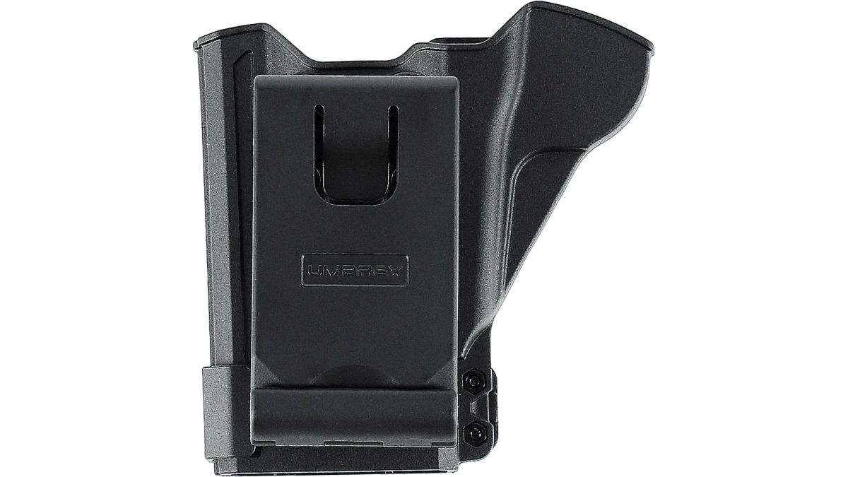 - Kabura Umarex T4E do HDR 50 – wytrzymała, lekka i bezpieczna. Automatyczna blokada, regulowany montaż na pas i miejsce na zapasowy magazynek. Szybki dostęp i komfort noszenia w każdej sytuacji!