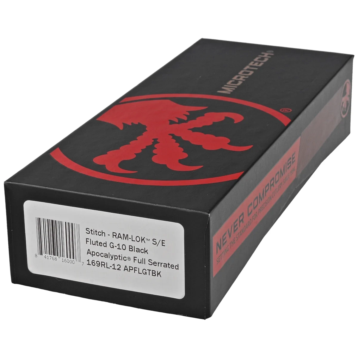 Nóż składany Microtech Stitch Ram-Lok S/E Black Fluted G10, Apocalyptic F/S M390MK by Borka Blades and Tony Marfione (169RL-12APFLGTBK)