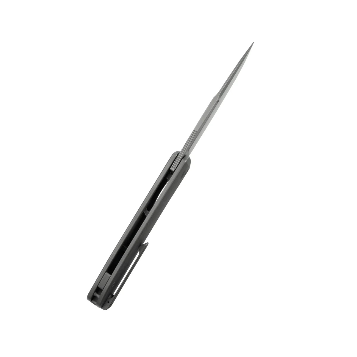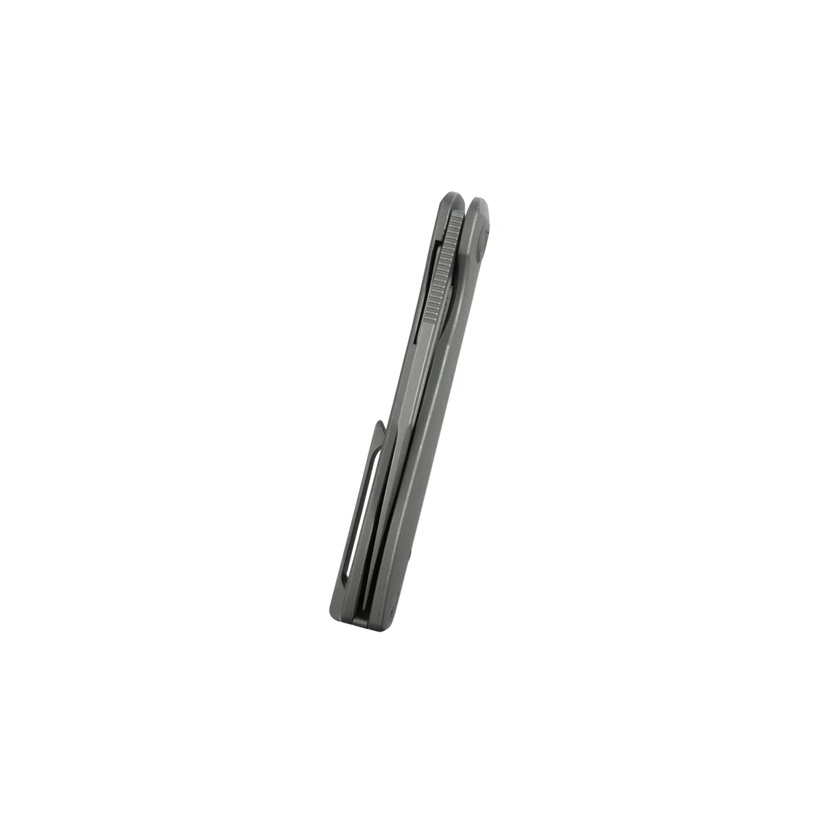 Głownia - klasyczna, typu Drop Point, wykończona maskującą drobne rysy powstałe podczas użytkowania metodą Beadblasted a następnie pokryte szarą powłoką. Grubość klingi w połączeniu z płaskim szlifem daje doskonałą geometrię krawędzi tnącej oraz ekstremalną wydajność cięcia. Ceramiczne łożyska kulkowe odpowiadają za płynną i gładką pracę mechanizmu i wspomagają otwarcie ostrza za pomocą otworu w klindze lub flippera który po otwarciu pełni rolę mini gardy zabezpieczającej dłoń przed zsunięciem się na ostrze. Na grzbiecie klingi upper jimping, karbowane oparcie pod kciuk. Mechanizm blokady to wytrzymały Liner Lock.