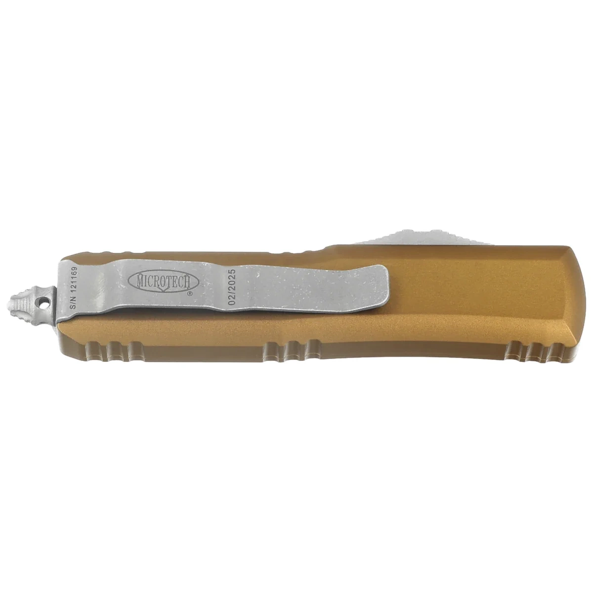 UTX-85 S/E Tan Aluminium, Apocalyptic to kompaktowy nóż automatyczny OTF z serii UTX-85. Zaprojektowany do zastosowań EDC, zachowuje wszystkie zalety większych modeli. Pracujący w trybie D/A, wyposażony w szybki mechanizm wysuwający ostrze.