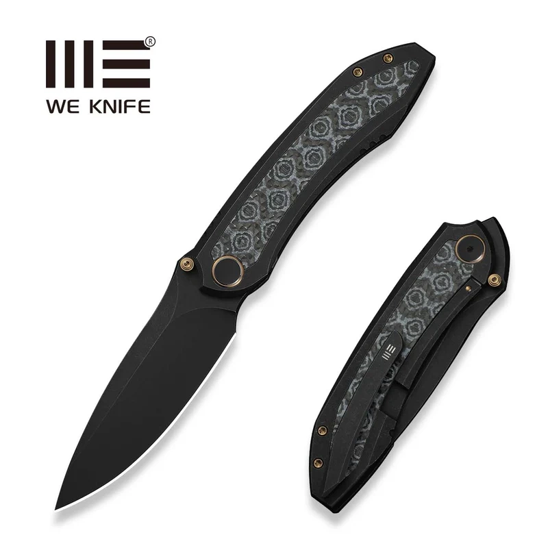 Nóż składany WE Knife Winsome Black Titanium/Gray G10/Rose Pattern Carbon Fiber, Black Stonewashed M390 (WE23092-1)