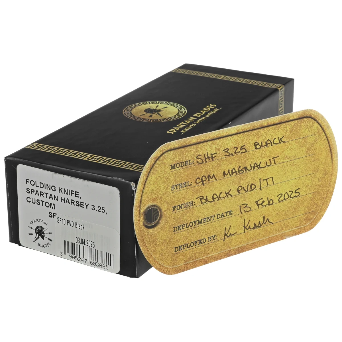 - Spartan Harsey Folder 3.25 Black PVD Titanium, Gray HW, Stonewashed, kompaktowa edycja foldera taktycznego projektu legendy knifemakingu, Billa Harseya. Ergonomiczna tytanowa rękojeść, głownia z doskonałej stali MagnaCut, pewna blokada frame lock.