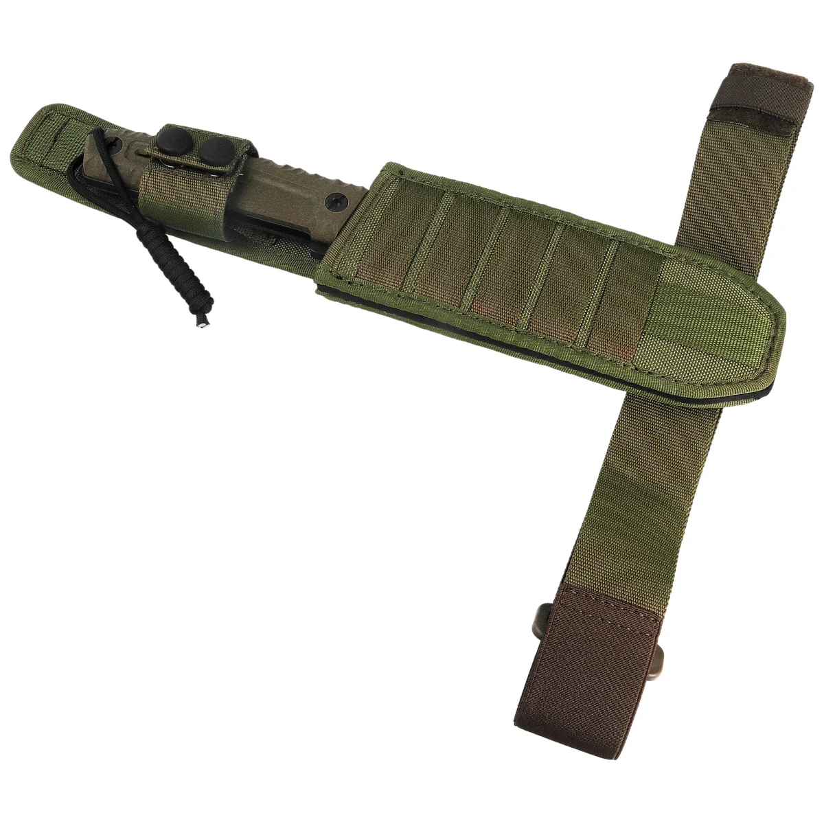 Pochwa - wykonana z Cordury, wyposażona w system MOLLE oraz pas udowy, umożliwia szybki dostęp do noża i elastyczne mocowanie w zależności od preferencji użytkownika. To kompletny zestaw taktyczny, przygotowany do działania w najbardziej wymagającym środowisku.