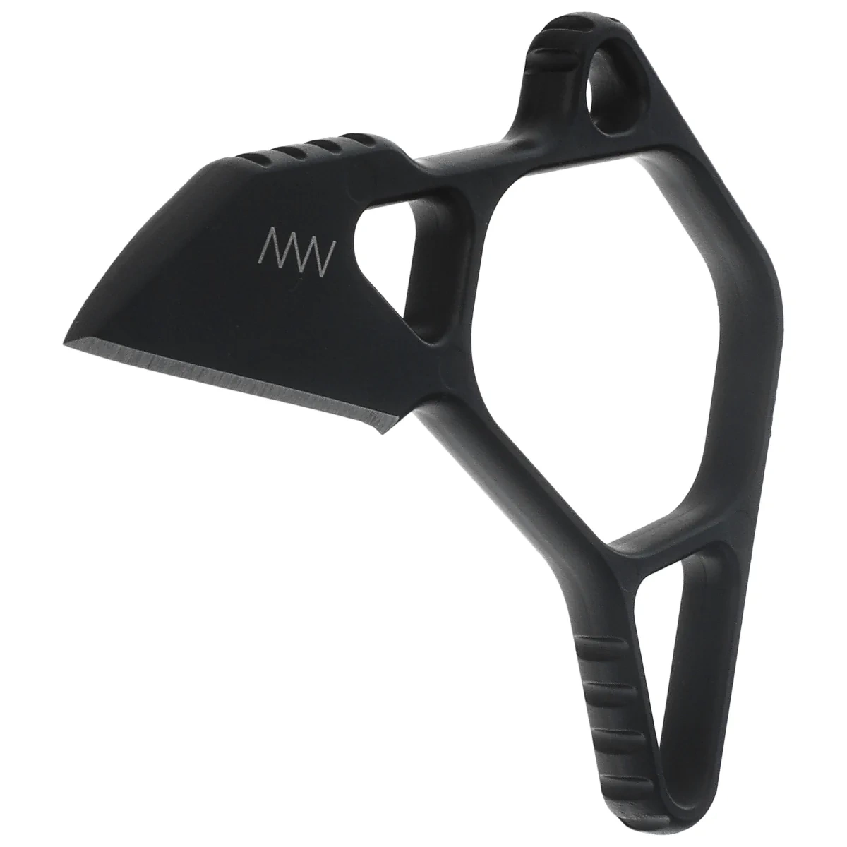 Rękojeść - z tej samej stali M2 w technologii MIM, co głownia, gwarantując integralność strukturalną i wytrzymałość. Asymetryczny, szkieletowy korpus z nacięciami poprawia chwyt i minimalizuje wagę (45 g). Finger ring umożliwia dynamiczne manewrowanie nożem w pozycji odwróconej i zwiększa kontrolę w sytuacjach awaryjnych. Powłoka Cerakote zapewnia odporność na korozję i maskowanie refleksów. Otwór na linkę daje możliwość zabezpieczenia lub personalizacji.