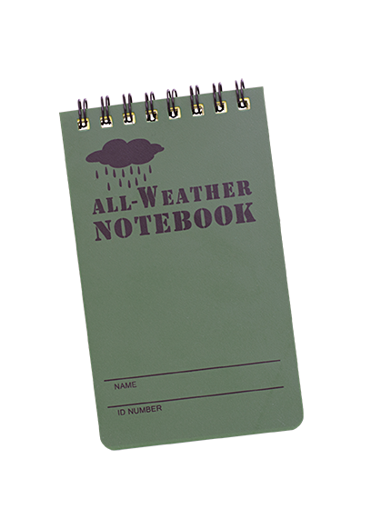• All-Weather Notebook (39569) – wodoodporny notes taktyczny Barbaric z okładką z tworzywa ABS i papierem odpornym na wilgoć. Niezawodne narzędzie EDC do pracy w trudnych warunkach terenowych.