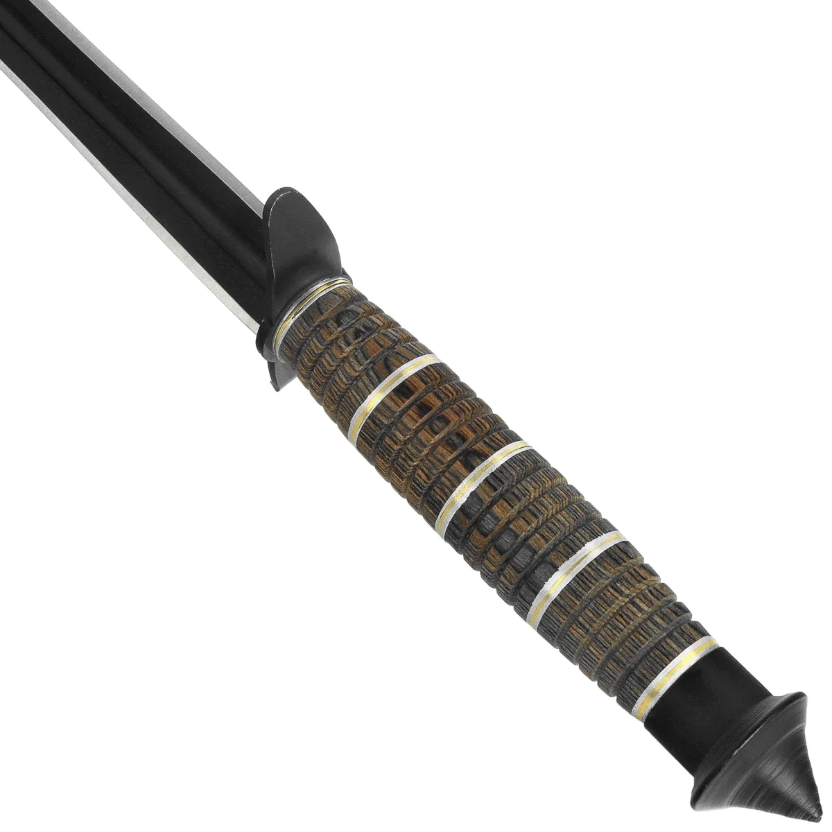 Głownia - wykonana ze stali nierdzewnej 3Cr13MoV, znanej z odporności na korozję i łatwości konserwacji. Charakterystyczny profil tri-edge obejmuje trzy krawędzie zbieżne w ostro zakończonym czubku, co nadaje konstrukcji agresywny wygląd oraz wysoką zdolność penetracyjną. Brak klasycznego szlifu i jednolita forma przekładają się na dekoracyjny i ceremonialny charakter noża. Czarne wykończenie (black coated) wzmacnia jego taktyczną estetykę i ogranicza odblaski, wpisując się w stylistykę noży pokazowych i ekspozycyjnych. Całość stanowi element o wyrazistym charakterze – przeznaczony do kolekcji, dekoracji lub pokazów.