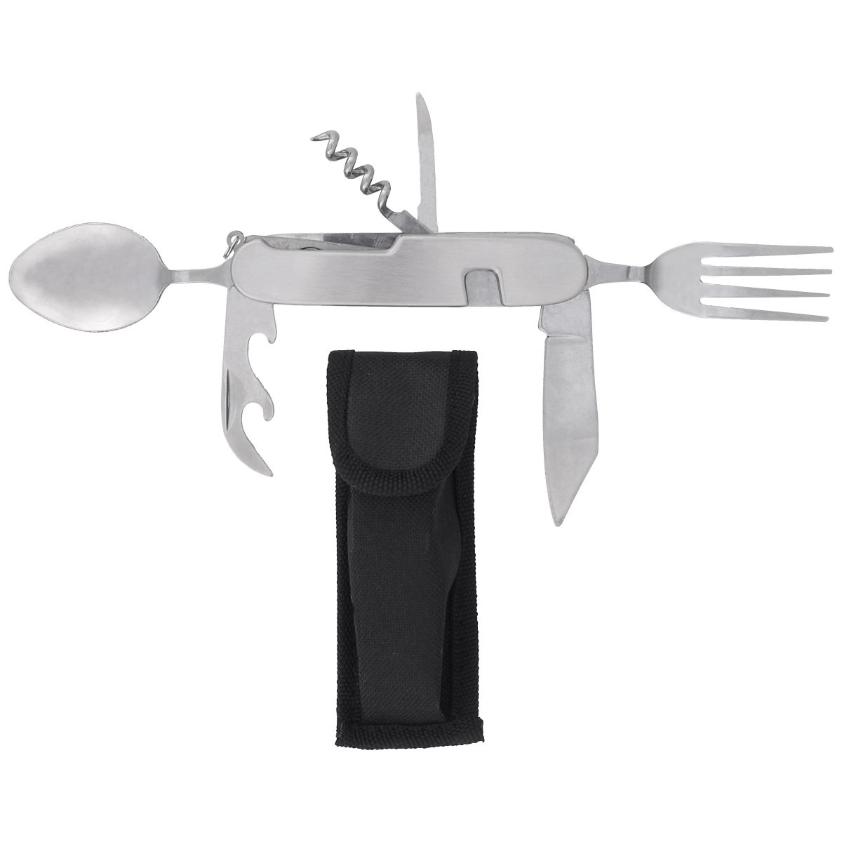 • Camping 7 Set Silver Aluminium, Mirror – kompaktowy niezbędnik turystyczny z siedmioma funkcjami, wykonany z aluminium i stali nierdzewnej 3Cr13MoV, wyposażony w etui z nylonu. Funkcjonalny zestaw do użytku w terenie i podróży.