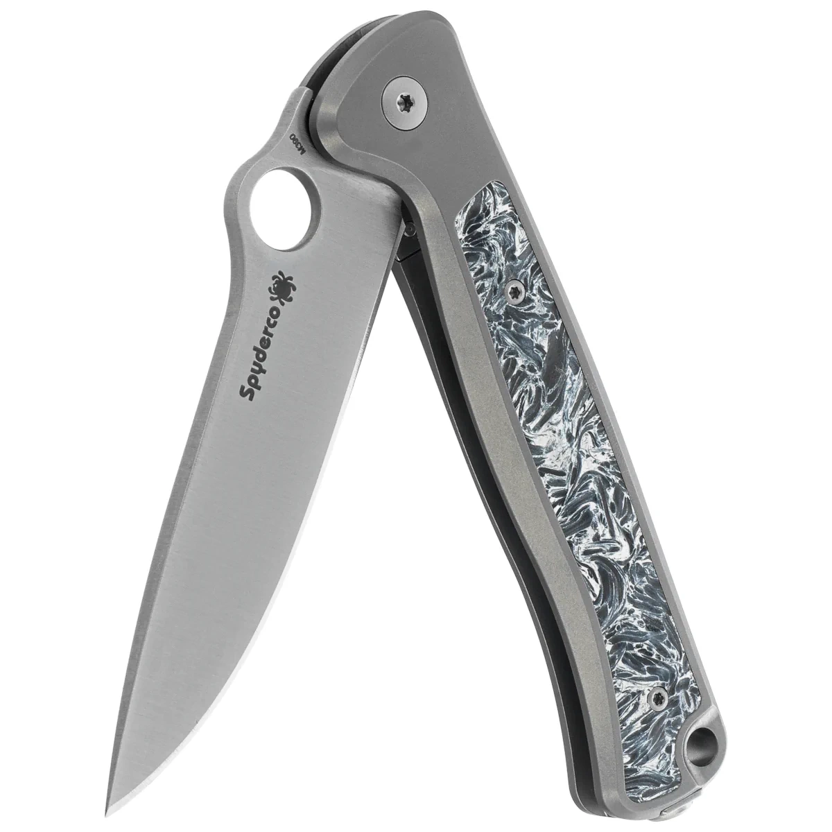 - Slym Titanium/Dark Matter Polar Fat Carbon, Satin – elegancki nóż składany od Spyderco, zaprojektowany przez Michele Molettę Pensato, z głownią ze stali M390 i rękojeścią z tytanu i Polar Fat Carbon. Precyzja, lekkość i styl w formacie EDC klasy premium.